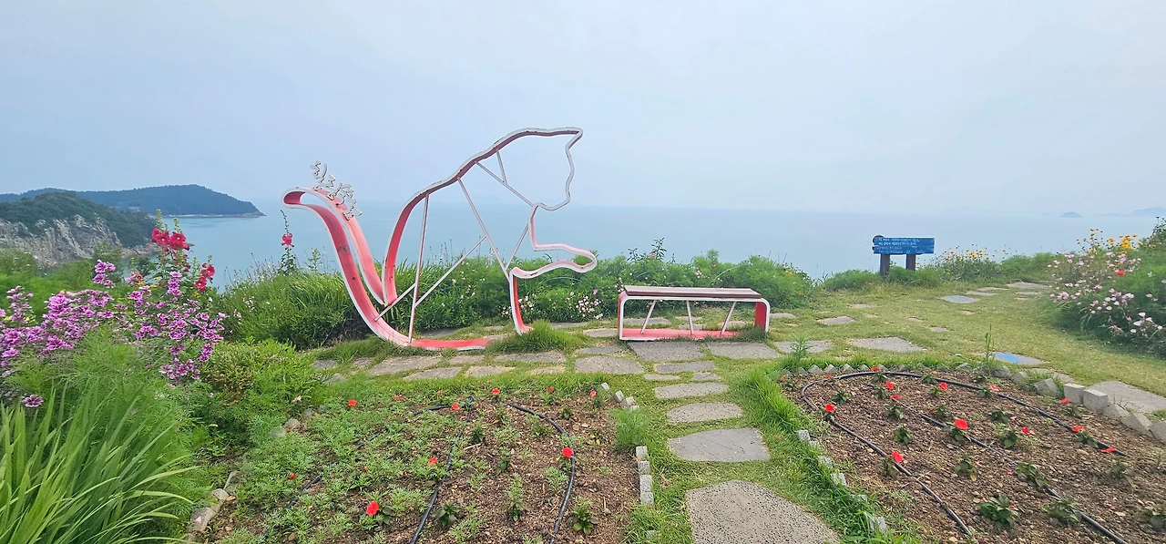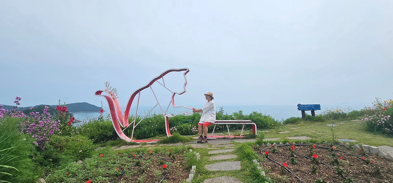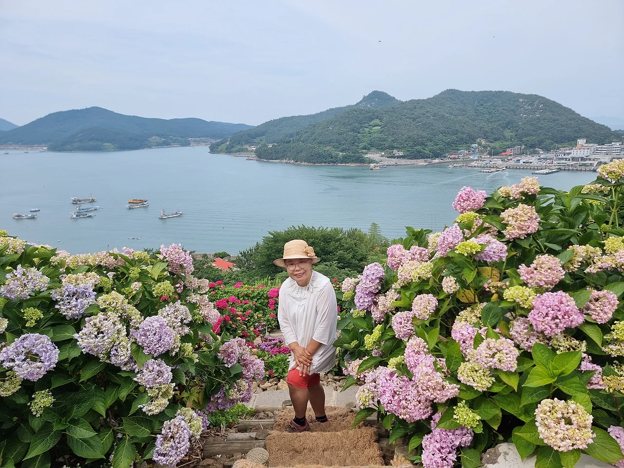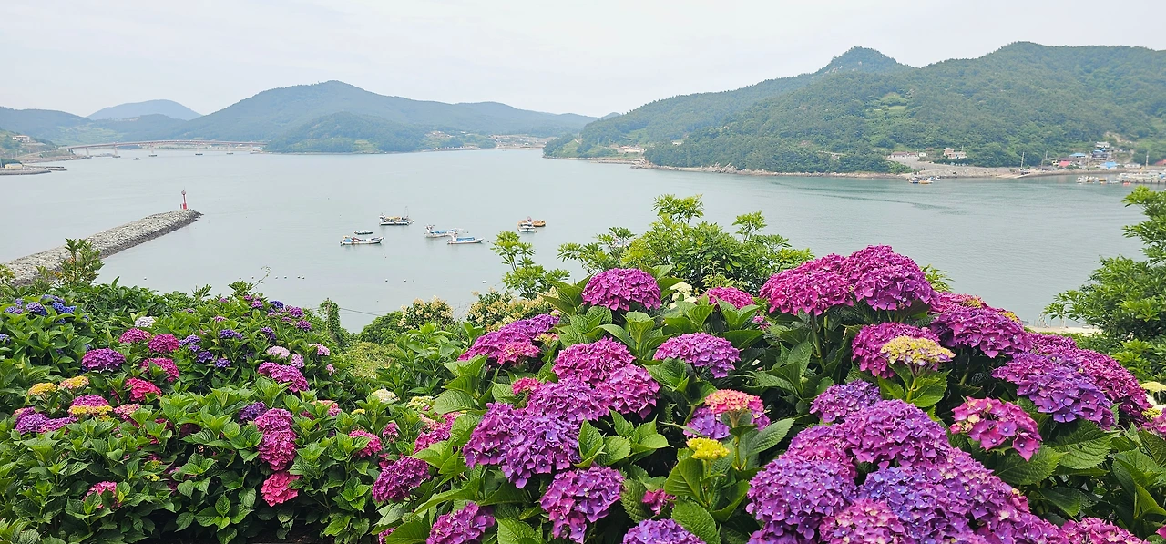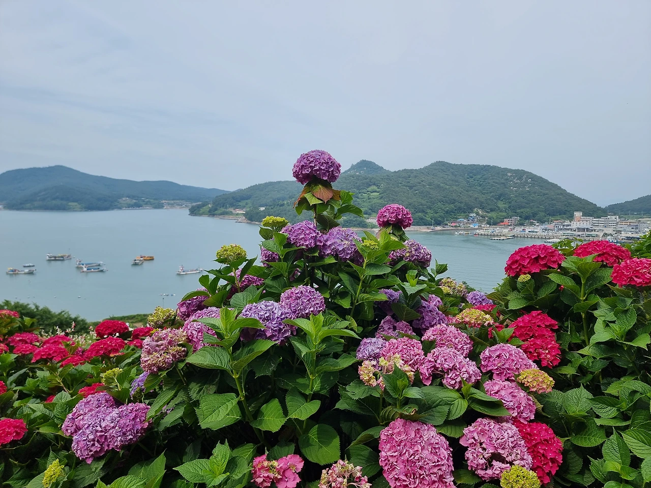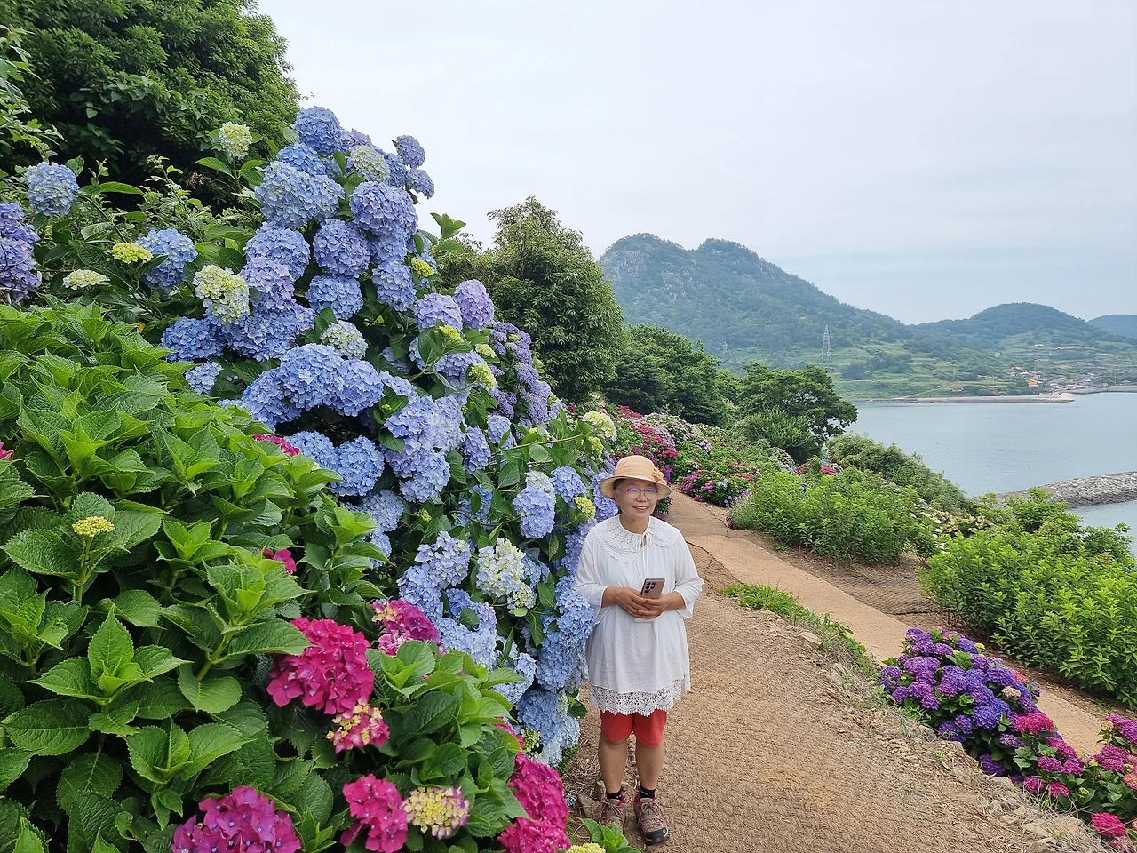 특히 쑥섬은 한자이름인 애도였는데 거제도 외도와 이름이 비슷하다 하여 한글이름인 쑥섬으로 개명했다고 한다. 중학교 국어교사였던 김상현 씨와 부인 약사 고채훈 씨가 어머니를 추억하며 만든 정원이라 한다. 건너편 나로항에서 보면 훌쩍 뛰어서 건널 것 같이 육지와 가까이 있는 섬입니다. 6월은 수국이 피어 일 년 중 제일 아름답다고 하는 때입니다.