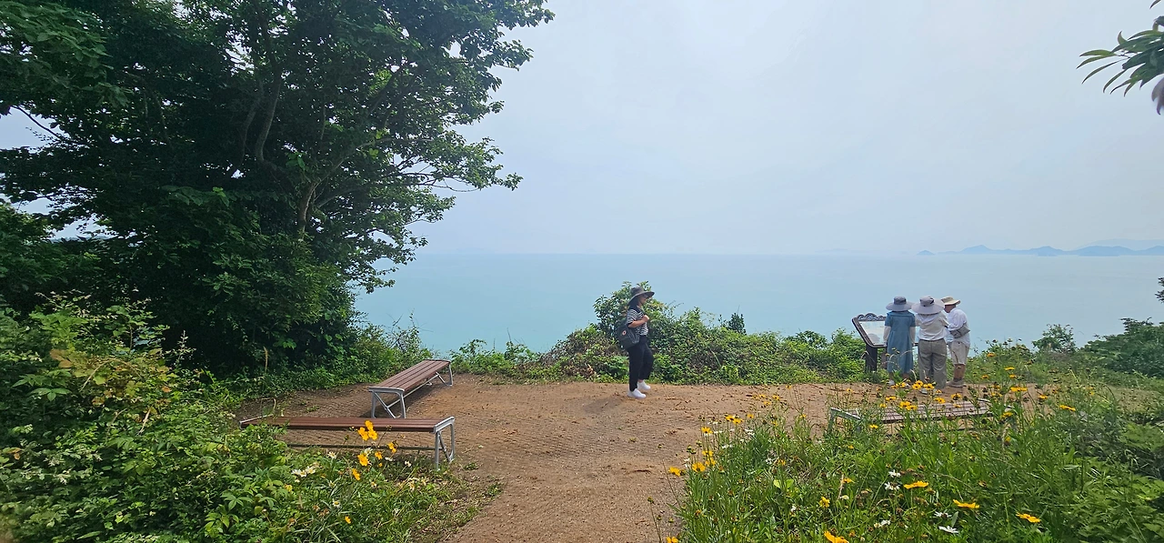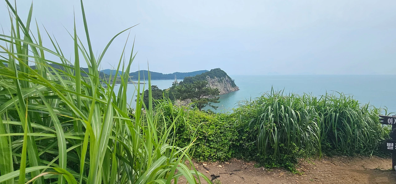환희의 언덕, 저는 이곳이 참 좋습니다. 고향의 숲을 벗어나 신비의 모험의 세계로 떠나온 느낌입니다. 거문도와 손죽도 초도가 흐릿하게 보입니다. 맑은 날은 제주도도 보인다고 하는데요. 우리는 맑은 날 보길도에서 제주도를 보았는데요 이곳에서도 보일 것은 분명합니다.신비한 기분과 함께 눈앞이 시원합니다. 초록풀들도 상큼한 마음을 더해줍니다