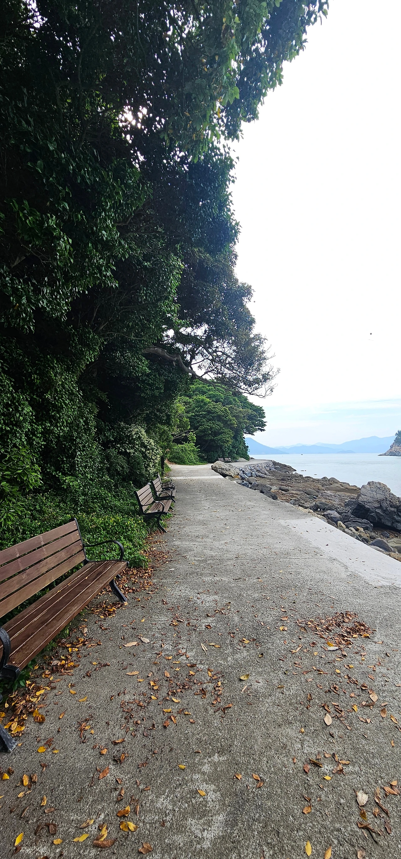 마을 길로 내려와서 바다 쪽으로 걸어보았습니다. 사람들의 인적이 드문 곳 벤치들이 줄지어 놓여있고요. 파도소리를 즐길 수 있어요.
