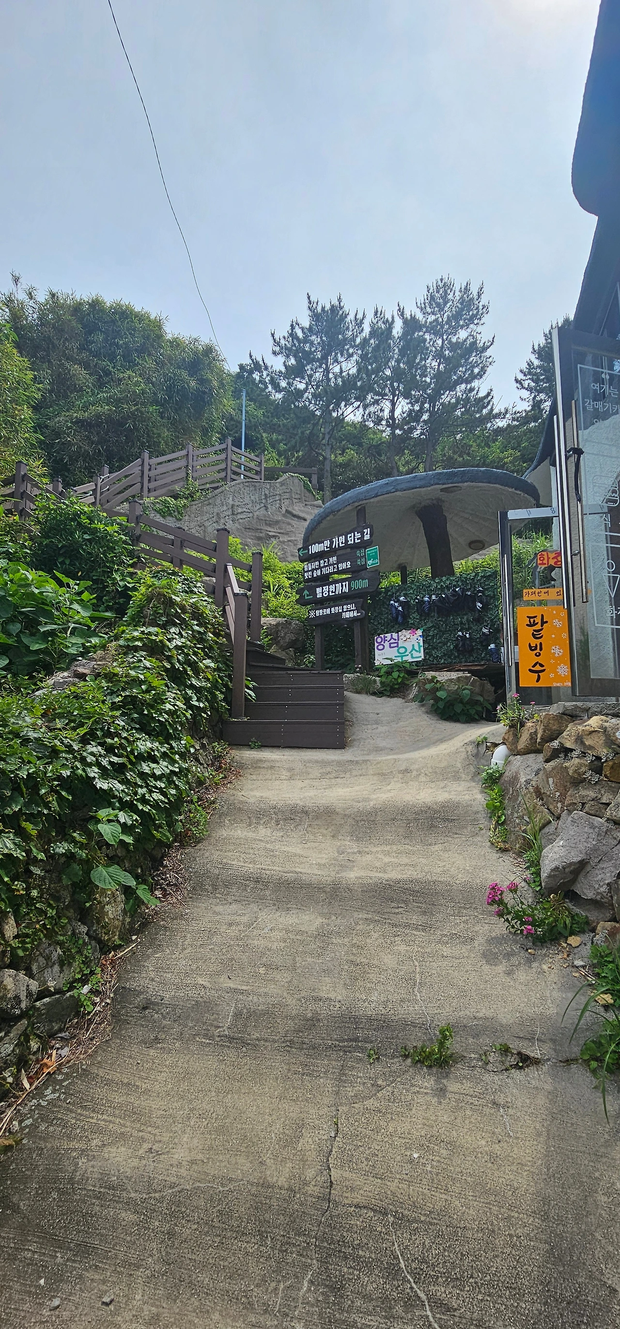 이제는 몬당길입니다. 야자매트를 깔아 걷기에 아주 좋습니다. 이 섬에 살고 계시던 석공인 아버지의 솜씨가 보태어진 아버지의 길이라고도 합니다. 쑥섬지기의 아버지께서 넓지도 좁지도 않은 길을 걸어가니 별정원에 도착합니다.