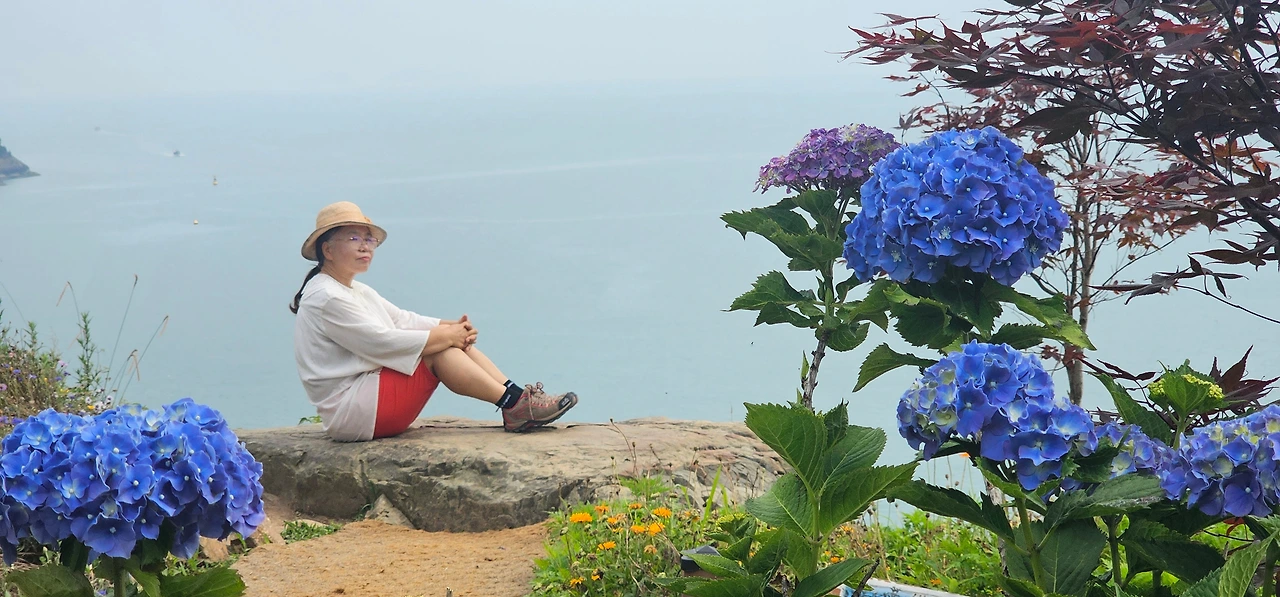 아름다운 수국 정원에서 힐링하고 한참 앉아 있었어요.