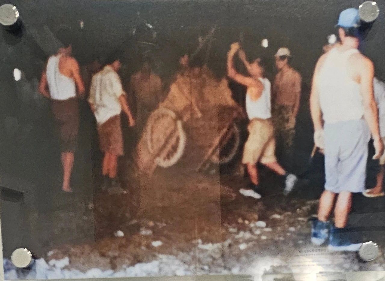 리어커에 돌을 실어 바조제를 쌓는 모습