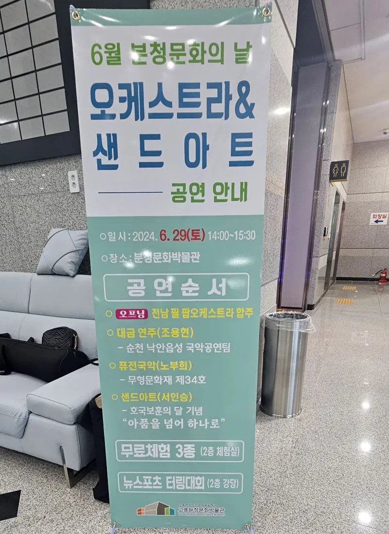 6.25 호국보훈의 달의 주제 공연이군요. 이제 74주년이 되어가고 실제로 아픔을 겪은 분들의 수가 많지는 안 켰군요. 바닷속이야기, 고흥분청사기 박물관 역사기록관, 분청사기관, 설화기록관을 샌드로 그리며 공연이 끝났습니다.