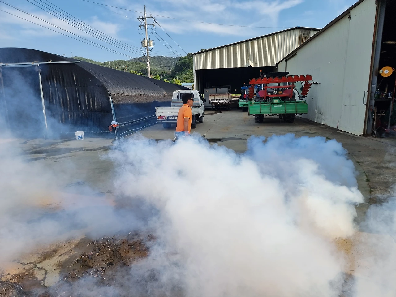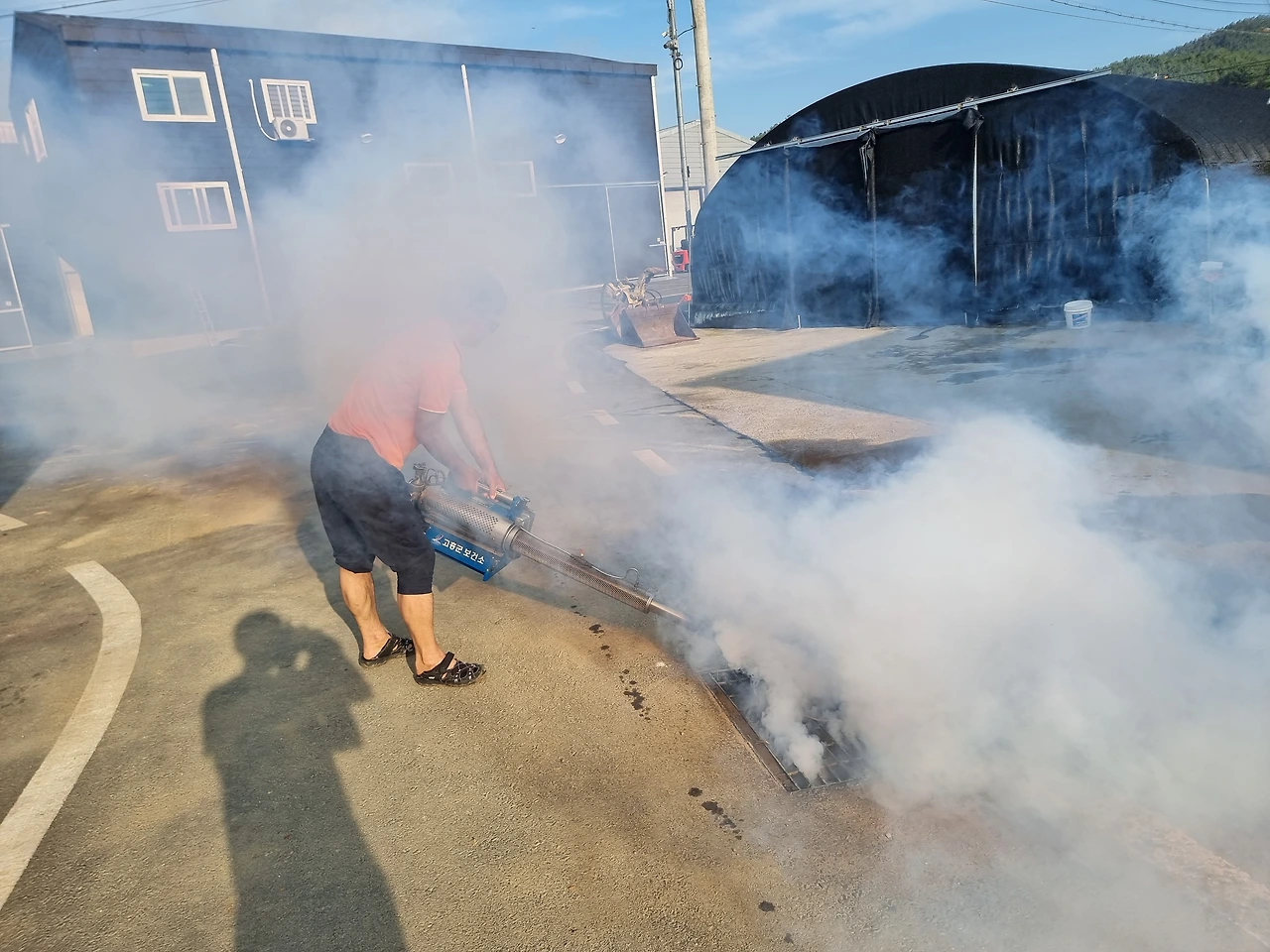 오후에 이장님이 방역을 하십니다. 요즘은 거의 매일 합니다. 그래서 모기는 많이 없는데 날파리는 많습니다. 방역을 할 재료는 주지만 뿌리는 것은 노력 봉사라고 합니다.