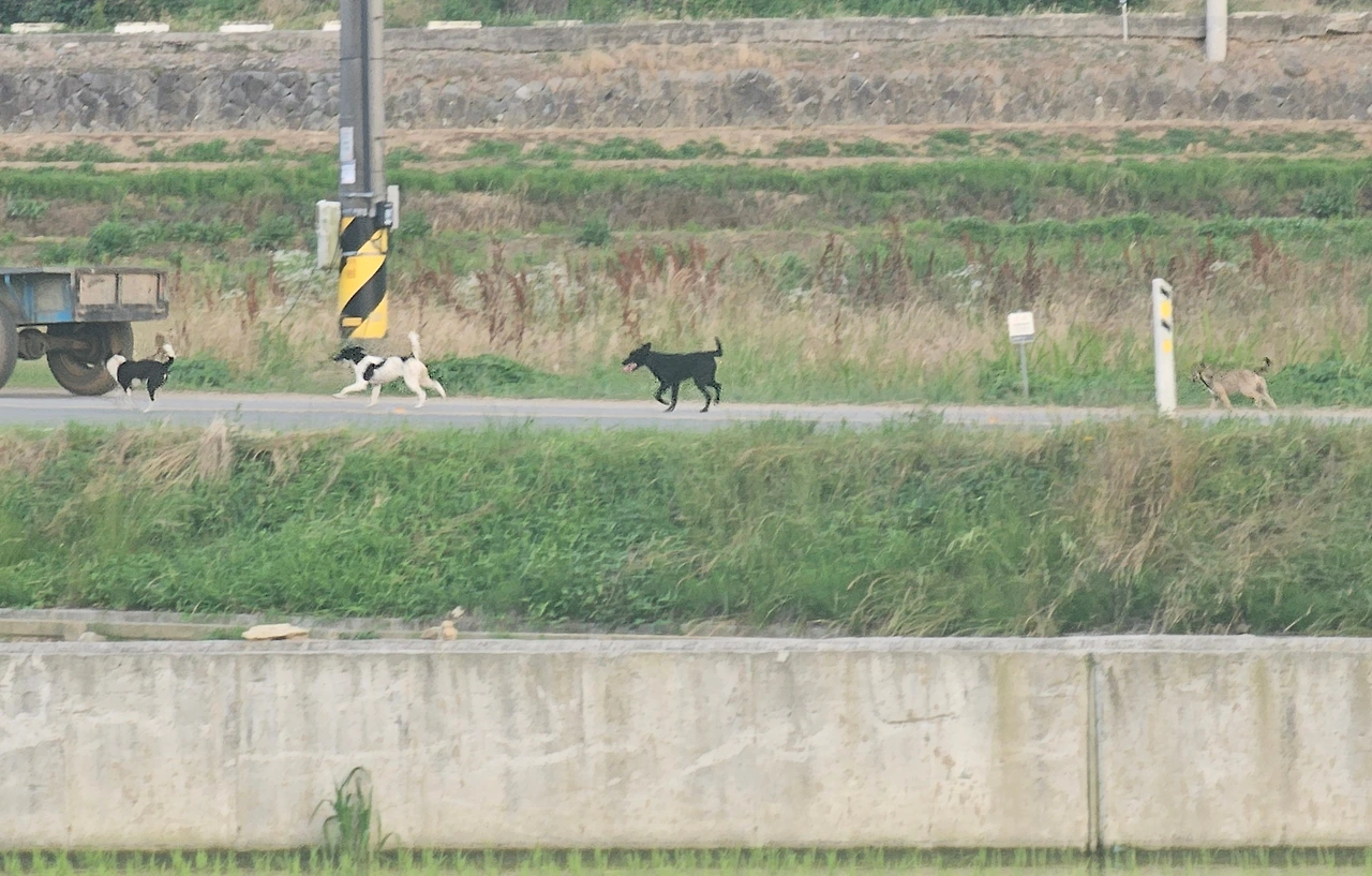 오늘 이장님을 화내게 한 개들입니다. 어미와 형제자매인데요. 5마리입니다. 주인도 모르게 새끼를 낳은 강아지를 아무도 분양해가지 않아서 다 키울 수밖에 없다고 합니다. 주인이 있는 개는 유기견 센터에 보내지도 못한다 합니다. 주인의 경운기 뒤를 따라 5마리가 달립니다. 우리가 자기 집 앞을 지나가면 다섯 마리가 합창으로 짓기도 합니다. 물지는 않습니다. 한 마리도 아니고 다섯 마리가 같이 뜯으니 애물단지들입니다.