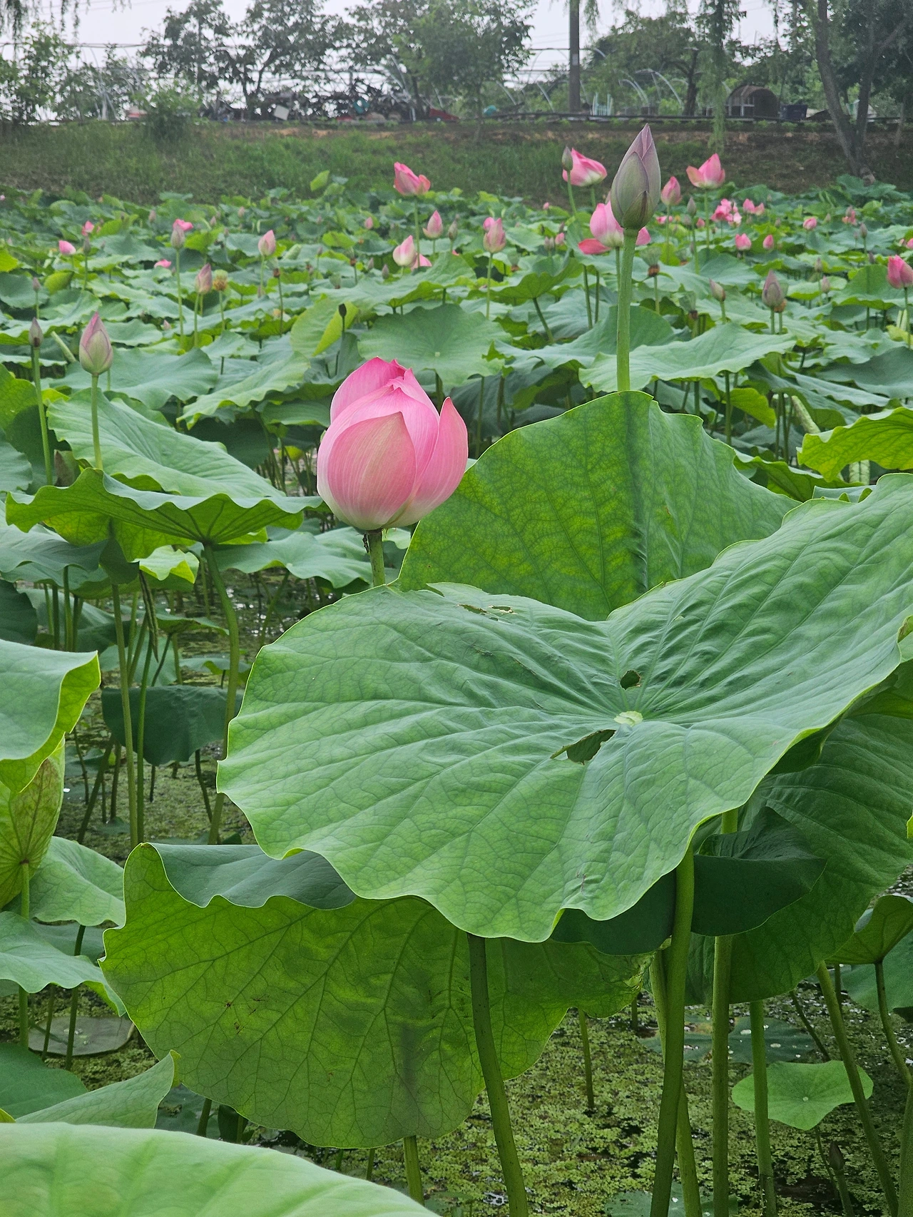 연못이 아닌 습지 정도에서 재배되기 때문에 키를 알 수 없던 연이 꽤 커다. 꽃하나가 카메라 화면보다 커서 접사사진을 수가 없다. 백연과 홍연들이 단지를 가득 채우고 지나가던 모든 분들이 셔터를 터트린다.