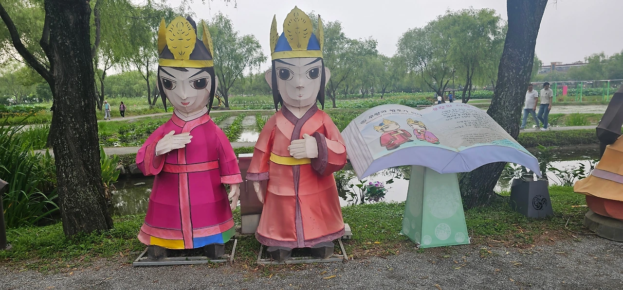 궁남지로 돌아오니 책에 선화공주와 서동의 사랑이야기를 만들어 두었다. 연등인가 보다. 밤에 불을 밝히면 이곳은 더 화려한 그들의 세상이 될 것이다.