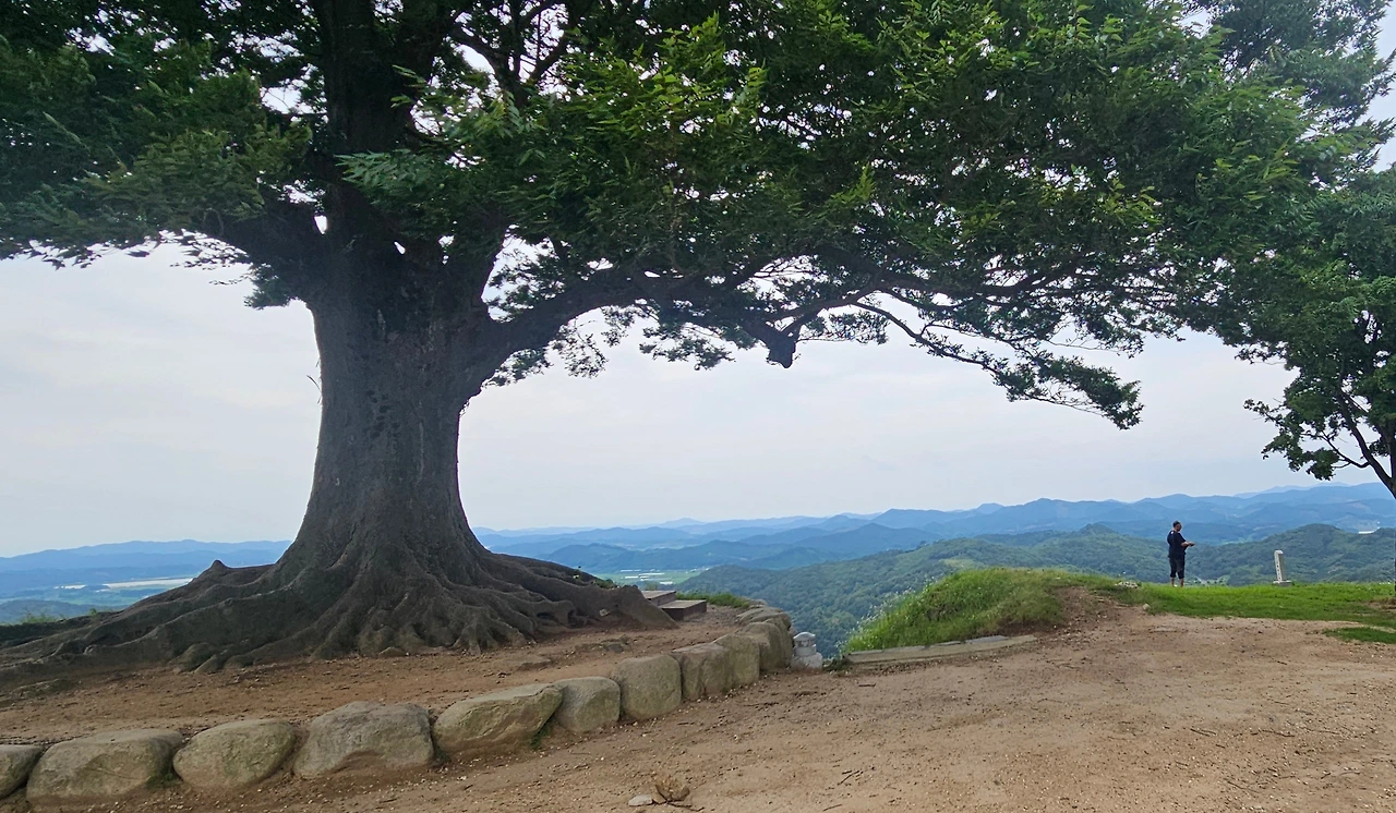 사랑나무도 신비하지만 나무 아래로 보는 조망이 더 좋다. 넓은 들 너머 논산, 부여가 다 보이며 낮은 산그리메들이 시원함을 갖게 해 준다.