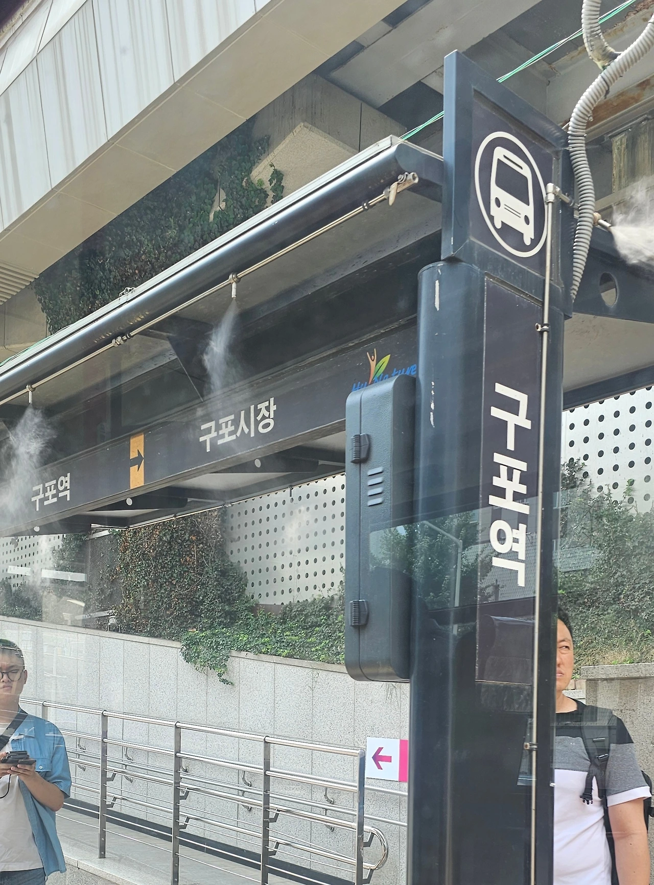 구포시장의 버스정류소를 보니 천장에서 물방울이 뿜어져 나온다. 횡단보도마다 그늘막 우산이 설치되고 거기서도 물방울들이 뿜어져 나온다. 대도시윽 거리의 모습이 조금씩 변해가고 있다. 모든 사람들이 불볕더위를 무사히 넘겼으면 좋겠다.
