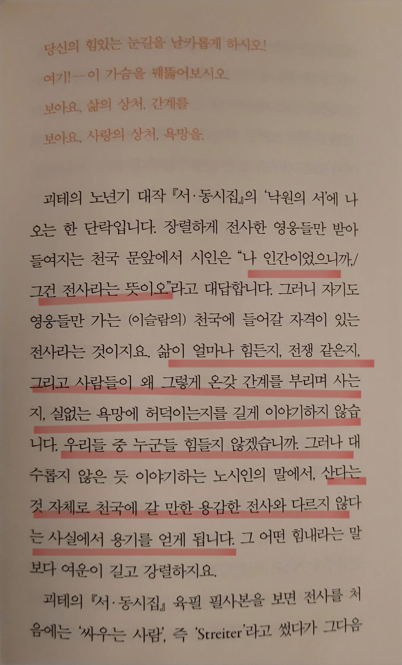 "산다는 거 자체만으로도 천국에 갈 만한 용감한 전사와 다르지 않다."