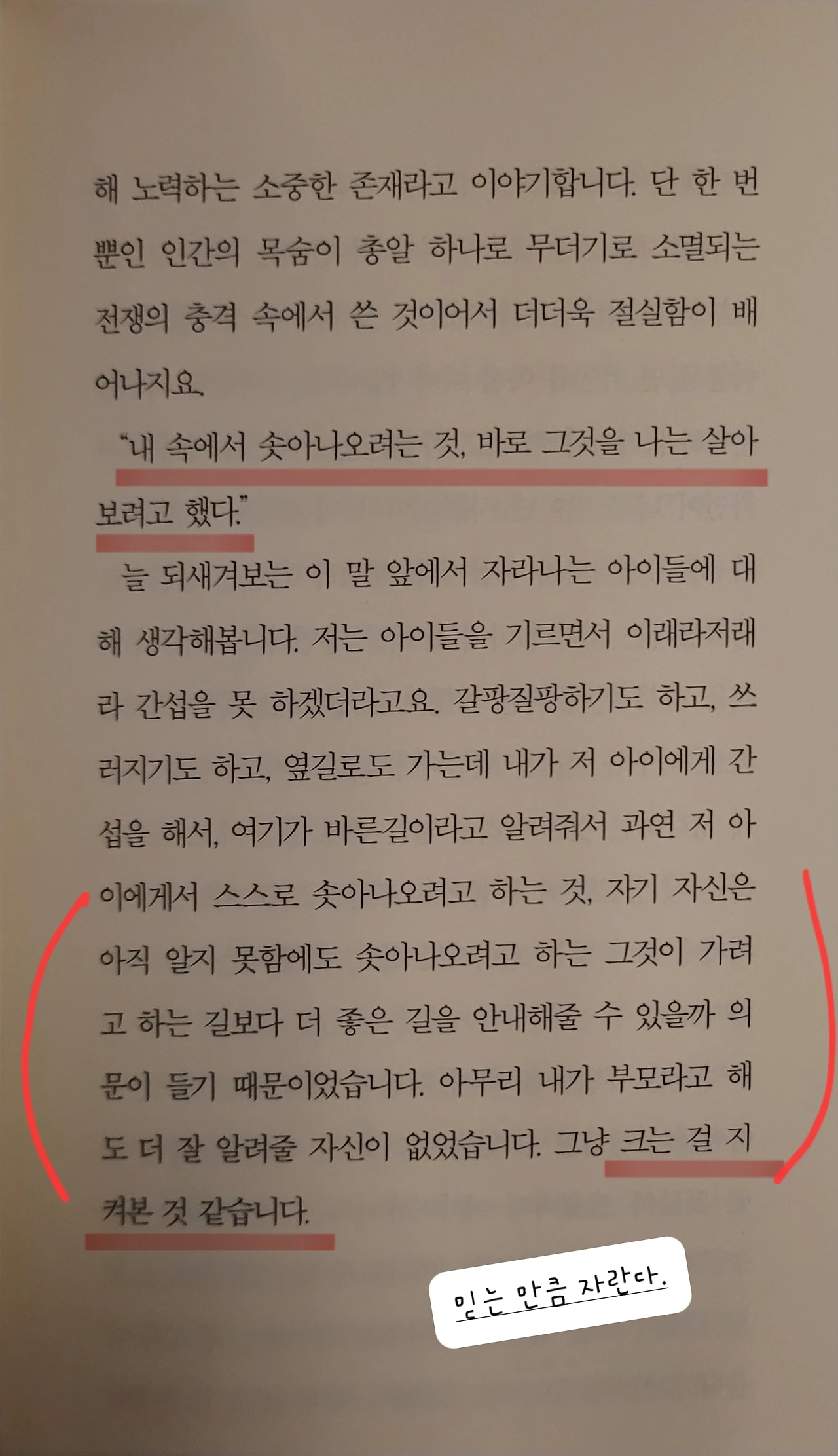 "믿는 만큼 자란다."
