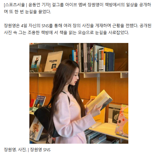 '책 읽는 장원영'과 상징적 동일시 내지 상상적 동일시를 하기 위해 책을 들고 있다면.