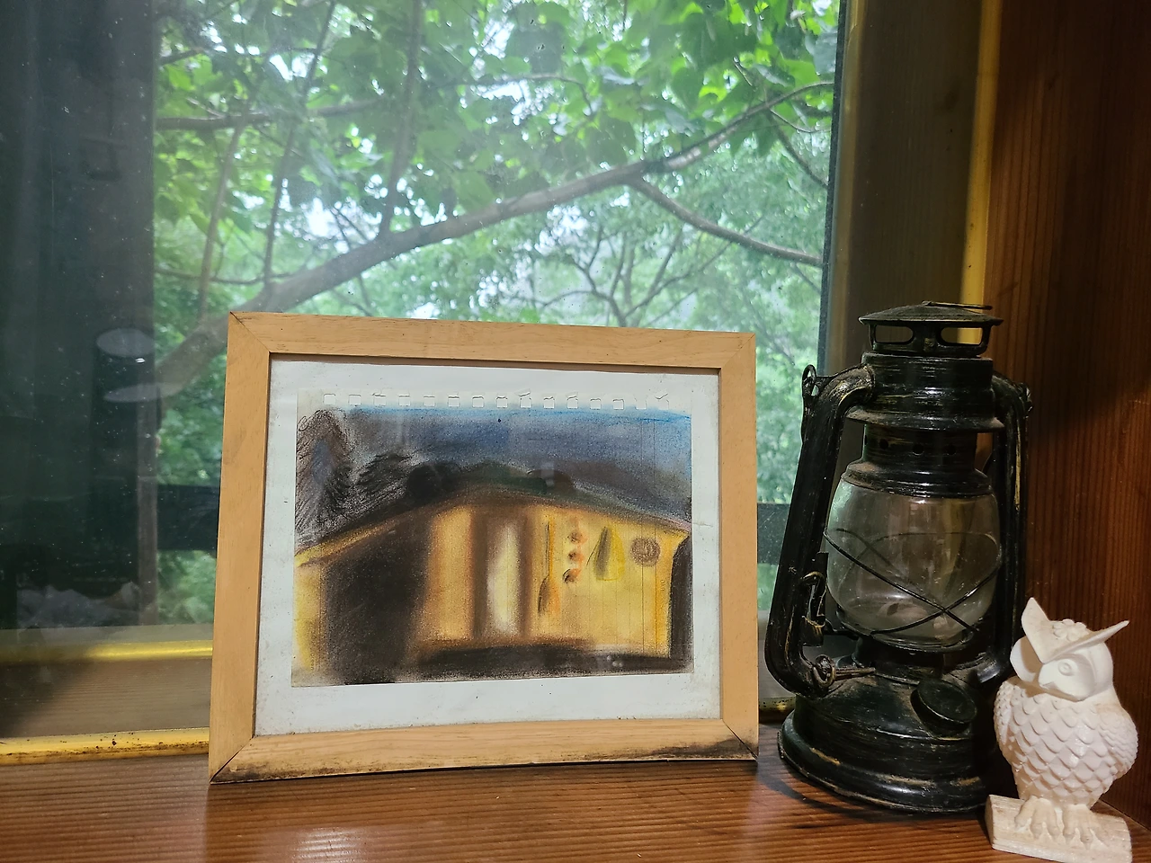 창틀 위 조그만 호롱불에 불을 붙이고