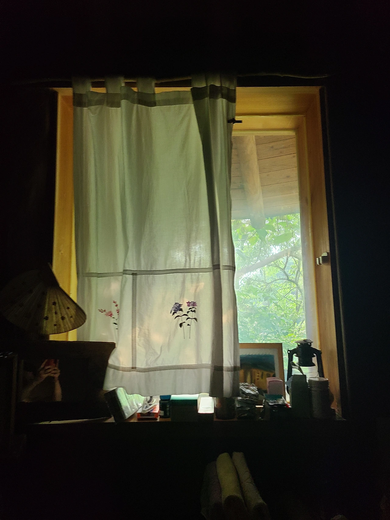 아침 햇살이 밤나무 잎사이를 뚫고 창안으로