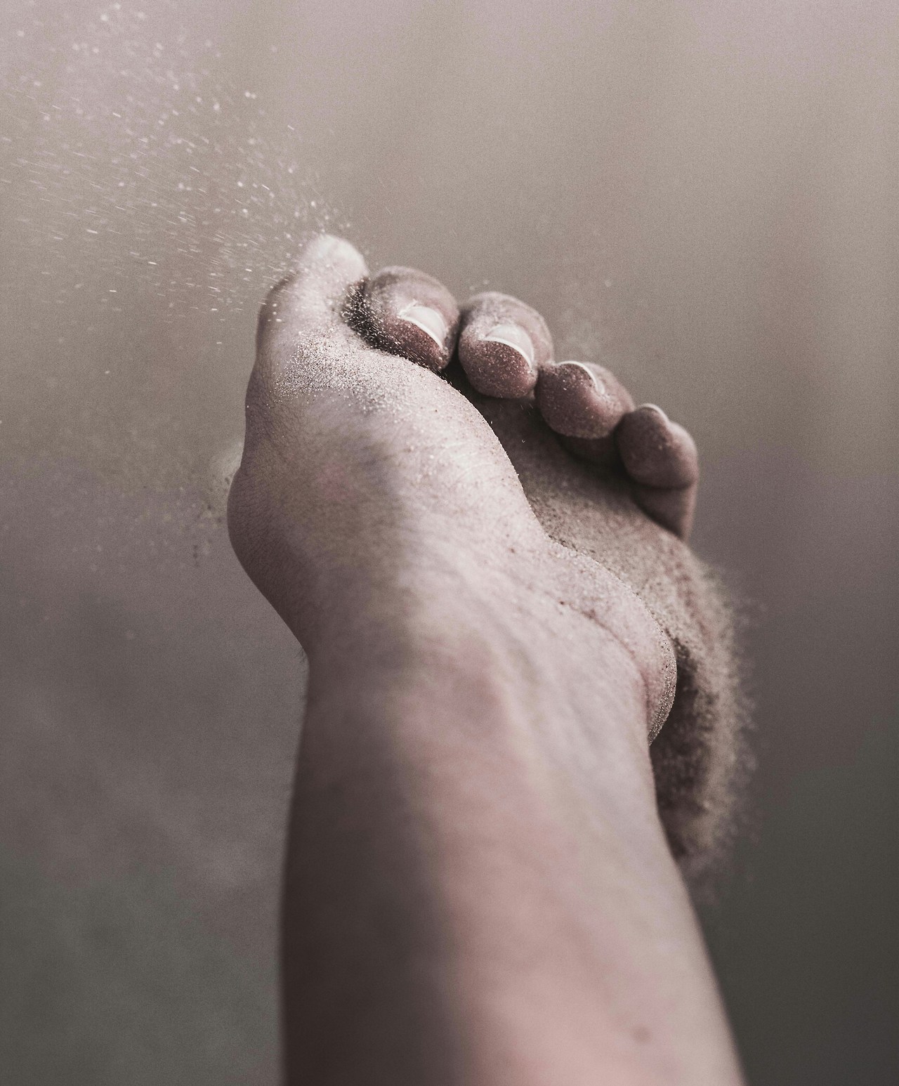 복권을 통해 1등이 된다면 부자로 놀고먹을 수 있을까요? 공무원의 삶을 벗어던지고 부자로서 새로운 인생을 살게 될까요? 물론 저는 복권을 사지 않고, 1등에 당첨된 적도 없어서 그러한 인생이 가능한지 아닌지 알 수는 없습니다. 다만 단기적으로 부를 많이 얻는다고 해도 그 사람에게 부가 계속 남아있지 않는다는 점은 확실히 압니다. 왜냐하면 그 사람에게 부를 지킬 수 있는 힘이 없기 때문입니다. 아래 그림처럼 손에 모래가 잠깐 들어왔다가 흘러나가 버릴 뿐이죠.