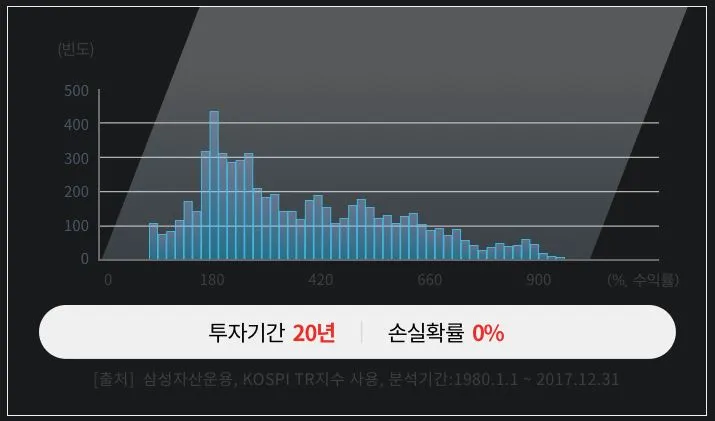 출처 - 전국투자자교육협의회하지만 10년 주기로 투자한다면 수익투자자는 86.2%로 늘어나고, 손실투자자는 13.8%로 줄어들죠. 20년 주기로 투자한다면 수익투자자 비율 100%에, 평균 수익률도 2배 정도가 됩니다.