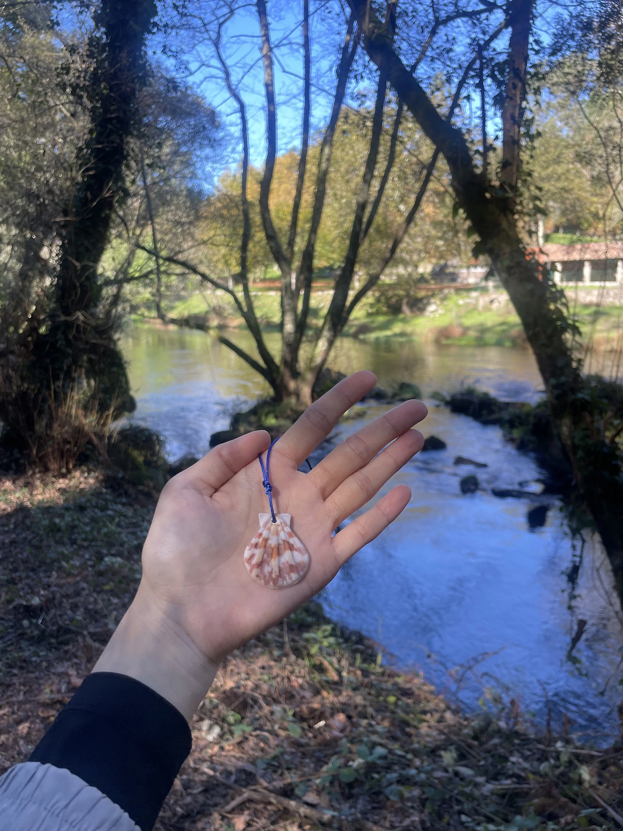 자! 여유만 부리다가는 일몰 전에 숙소에 도착하지 못한다. 오늘은 기필코 숙소에 일찍 도착해야 하는 이유가 있었기에 자리를 박차고 일어났다. 하지만 산속이라 그런지 핸드폰의 gps가 잘 안 잡혔다. 길이 아닌 것 같은 풀숲을 지나 굳게 닫혀있는 철문 너머로 까미노 표식이 보였다. 뒤를 돌아 다시 왔던 길을 되돌아가다 한 소녀를 만난다. 나는 이쪽으로 가면 길이 막혀 있다고 말을 건넸고, 그녀와 나는 어떻게 가면 좋을지에 대한 생각을 하다가 고개를 돌려 담을 쳐다본다. 우리는 담을 넘기로 했다. 순간 탐험가가 된 것처럼 그녀가 먼저 담을 넘었고, 나에게 손을 뻗었다. 배낭의 무게 때문에 그녀의 손을 잡기가 조심스러웠지만 그녀는 굉장히 듬직하게 걱정 말라며 나의 손을 덥석 잡고 올렸다. 그녀의 이름은 옥사나, 우크라이나 출신의 여자애였다. 길을 개척한 우리는 아까 발견했던 닫혀있는 문을 슬쩍 건드렸는데, 세상에 그 문은 열려있는 문이었다.. ㅋ 우린 그냥 재미난 모험을 즐긴 셈이었다! "... What?!?"이라며 민망해하는 나를 보고 어깨를 으쓱하며 웃어주던 그녀 또한 까미노 길을 혼자 왔다 했다. 그리고 다리를 건너기 전 자신의 사진을 찍어주는 이가 없었다며 사진 요청을 해왔고, 나도 마찬가지였기에 묘한 동지애를 느끼며 우리는 서로의 사진을 찍어주었다. 그러곤 곧 또 만나자는 짧은 포옹과 함께 그녀는 신기루처럼 사라졌다.