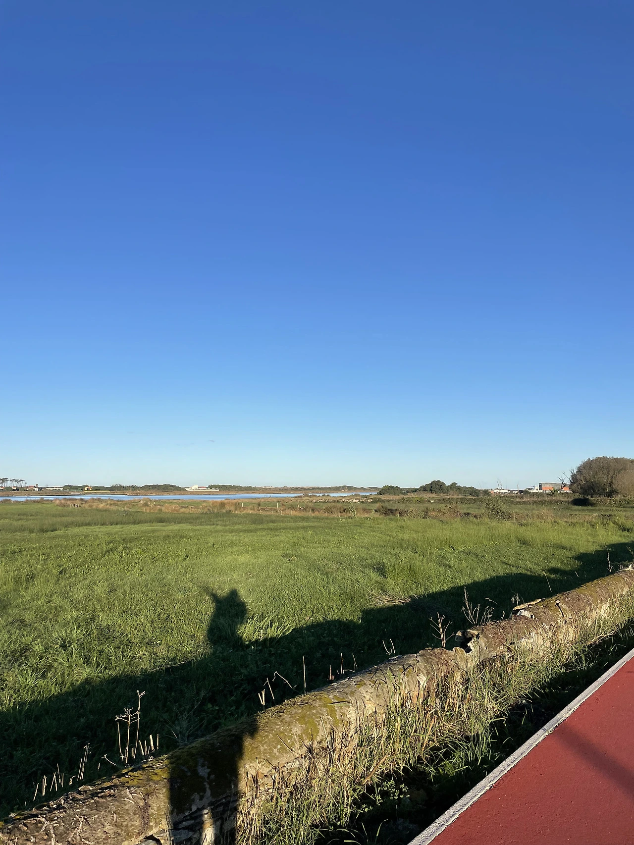 어제보다 1시간 일찍 얼굴을 들이민 해님을 서둘러 만나러 나온 탓일까. 오늘 길거리에는 사람들이 왜 이리 없을까? 일요일이었다. 만국의 통일성인가, 일요일은 공휴일이기에 다들 집에서 쉬는 듯했다. 그렇게 모두가 잠든 듯한 조용한 아침 골목길들을 걷다 보면 다시 바다가 보인다. 확실히 내가 걷고 있는 순례 여정은 바다와 함께 걸을 수 있는 해안 길이다. 어제의 그 사나웠던 바다는 잔잔하지만 활기를 가득 채운듯한 새파란 빛을 띄고 있었다. 그 활기 덕분인지 조용했던 골목길과는 달리 반려동물을 산책시키는 주민들, 러닝 하는 사람 또는 크루들, 그리고 손을 잡고 걸어 다니는 노부부들이 보였다. 우리는 서로의 옆을 지날 때마다 눈인사를 한다. 반복되는 아이컨택의 행위는 나의 깊숙한 곳에 자리하고 있던 작은 승부욕을 자극해 누구든 내 옆을 지나가는 모두와 눈을 마주하며 수줍은 미소를 나누고 싶다는 생각이 들게 만든다