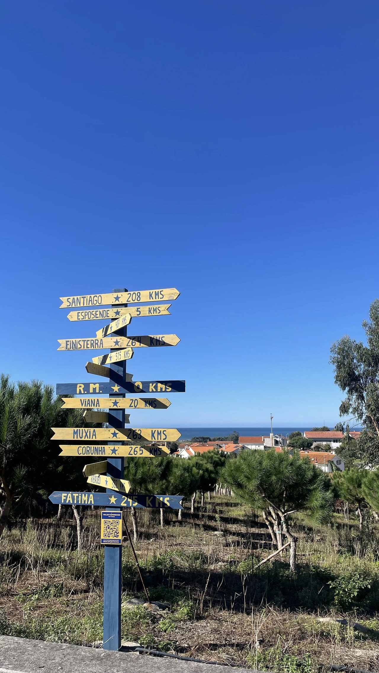 그런 활기도 잠시 오늘은 해안 길을 따라 걷는 시간이 유독 적었다. 다시 골목길로 들어가 굽이굽이 언덕을 오르게 되고, 바다의 곁에서 걷는 것이 아니라 언덕길 위에서 수평선을 바라보며 걷게 되었다. 붉은색 노란색의 건물들을 지나 초록색 나뭇잎들을 보며 그 언덕길을 걷다 보면 보이는 안내판에 산티아고까지 208km라고 적혀있다. 아직 나는 100km도 채 걷지 않았다는 사실과 동시에 벌써 50km 정도를 걸어왔구나 싶은 생각이 든다. 이 지점까지 오는 동안 나는 한국 사람은 단 한 명도 본 적이 없었다. 특히 어제는 까미노 친구들 또한 한 명도 만나지 못했고, 오늘은 과연 어떤 이들을 만날 수 있을까 싶은 마음을 품고 고개를 들어 앞을 본다. 두 명의 중년 여성이 갈림길을 두고 어디로 가야 할지 고민하고 있다. 또다시 나의 승부욕이 피어나 그들과 눈을 마주하고 웃으며 수줍은 미소를 나눈다. 그들은 까미노 길에서 지나갈 수 있는 마을들이 정리된 종이 지도를 가지고 있었고, 오로지 까미노 표식만을 찾으며 길을 걷고 있는 듯했다. 아날로그의 힘이란 굉장하고 멋있었다. 그들의 그런 행위가 나를 또 한 번 돌아보게 된다. 그 옛날 순례자들은 핸드폰 없이 이 길을 걸었을 텐데, 나 또한 디지털에 지고 싶지 않다는 마음으로 함께 까미노 표식을 찾다가 길을 잘못 들 것 같다는 걱정에 결국 핸드폰을 꺼내 방향을 확인하여 그들에게 조심스럽게 방향을 인도하였다. 그렇게 우리는 자연스럽게 같이 걷게 되었고 USA와 South Korea가 만났다. 디지털에게 한번 졌던 마음 때문일까 나는 번역기를 돌리지 않은 채 그들과 대화했고, 나의 귀는 그들의 언어를 마구 튕겨내어 다소 어려움을 겪게 되었다. 그들은 나에게 왜 이 길을 선택했냐고 물었고, 나는 바다가 좋기 때문이라고 말했지만 그녀의 질문은 왜 이 “까미노길”을 걷고 있냐는 의도였다. 부끄러웠다. 계속되는 소통의 오류는 나를 작게만 만들었다. 그들이 그렇게 만든 것이 절대 아니었다. 그저 세상을 보고 싶어, 그 세상과 소통하고 싶어 이곳에 왔다 여긴 내가. 세상을 눈으로 보는 것만이 내가 원하던 소통이 아니라 세상에 살아가는 이들과의 연결을 위해서는 서로의 언어를 존중하고 이해하며 소통을 할 수 있어야 한다는 것을 몸소 깨닫게 되며, 나에게는 그 능력이 부족하다는 것을 직면한 것뿐이었다. 잠시 동안 의기소침해진 마음으로 침묵했다. 그 침묵 때문이었을까, 그녀들이 나의 이런 마음을 알아준 걸까, 점점 서로의 걷는 속도가 달라지며 결국 나는 길에서 조금 벗어난 지점에 있다는 카페에 가기 위해 좌회전을 했고 인사도 할 겨를 없이 우리는 헤어졌다. 난 그녀들에게 이름조차 물어보지 못했다.