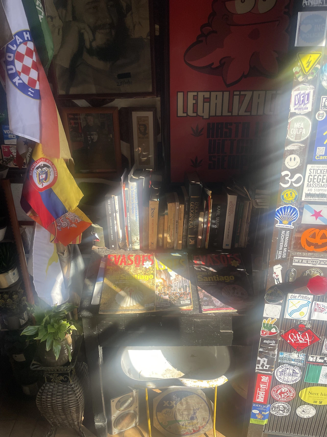 싱숭생숭한 마음 때문에 지퍼를 잠근 듯 다물어 있던 나의 입술. 그때 만난 펍카페는 나의 그 침묵을 깨주는 곳이었다. 가게 안으로 슬며시 발을 들이밀었더니 벽 가득하게 순례자를 상징하는 듯한 장식들, 많은 이들이 다녀간 듯한 방명록과 햇빛이 슬며시 들어오는 창가에 신성한 듯이 걸려있는 가지 각국의 소지품들, 넓지 않은 공간에 비해 테이블과 의자로 가득 차서 서 있기에는 충분한 눈의 도장을 찍을 수 없기에 배낭을 내려놓고 한숨 돌리라 이야기를 해주는 듯한, 가게 주인장의 삶이 고스란히 묻어있는 듯한, 그런 분위기의 공간.