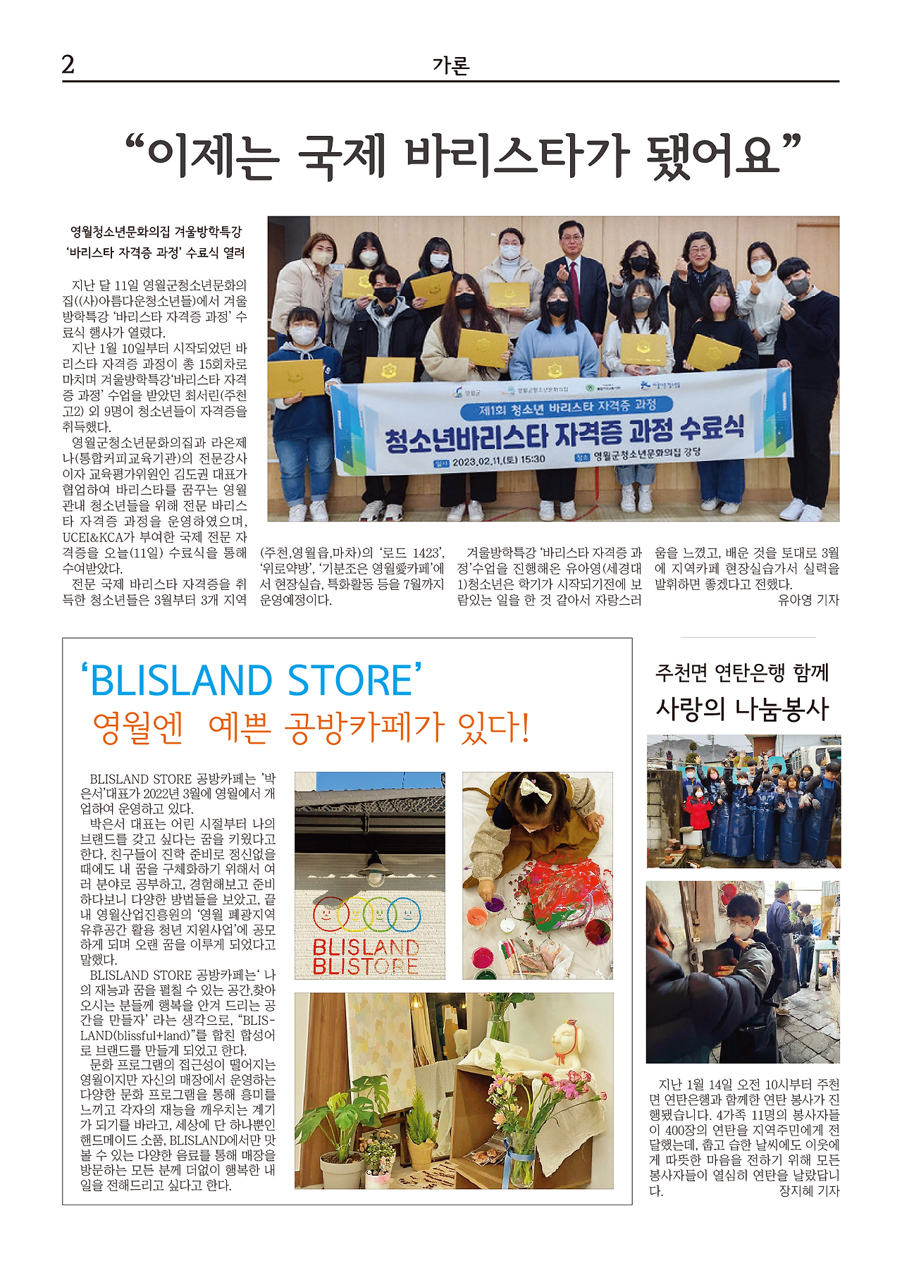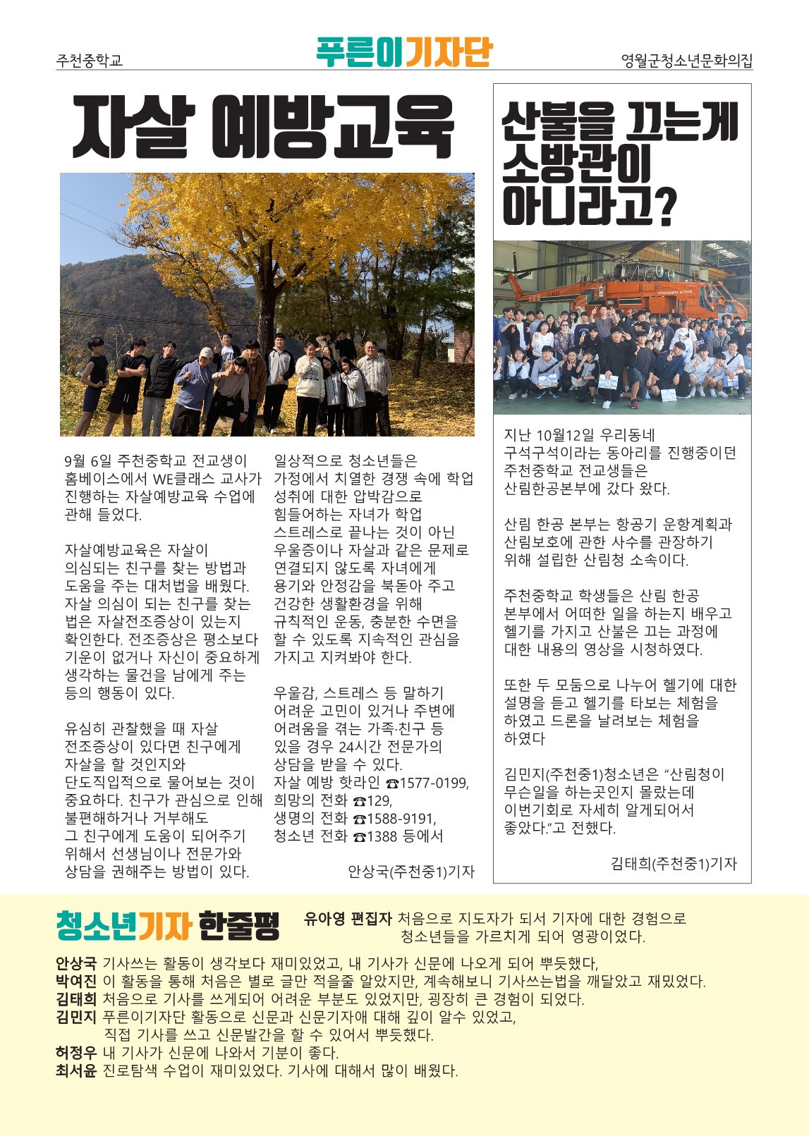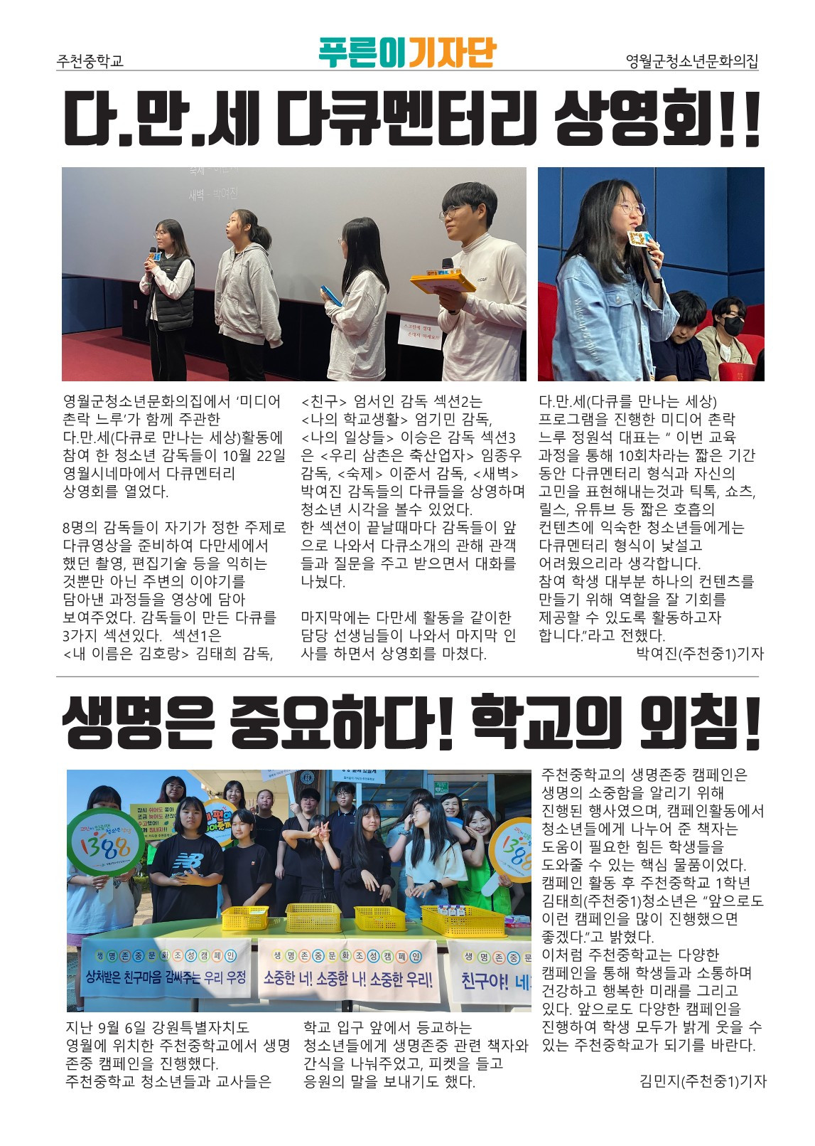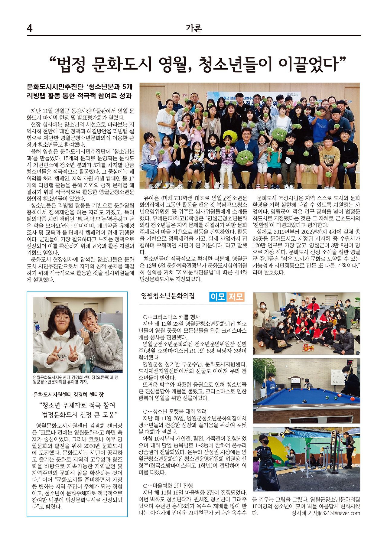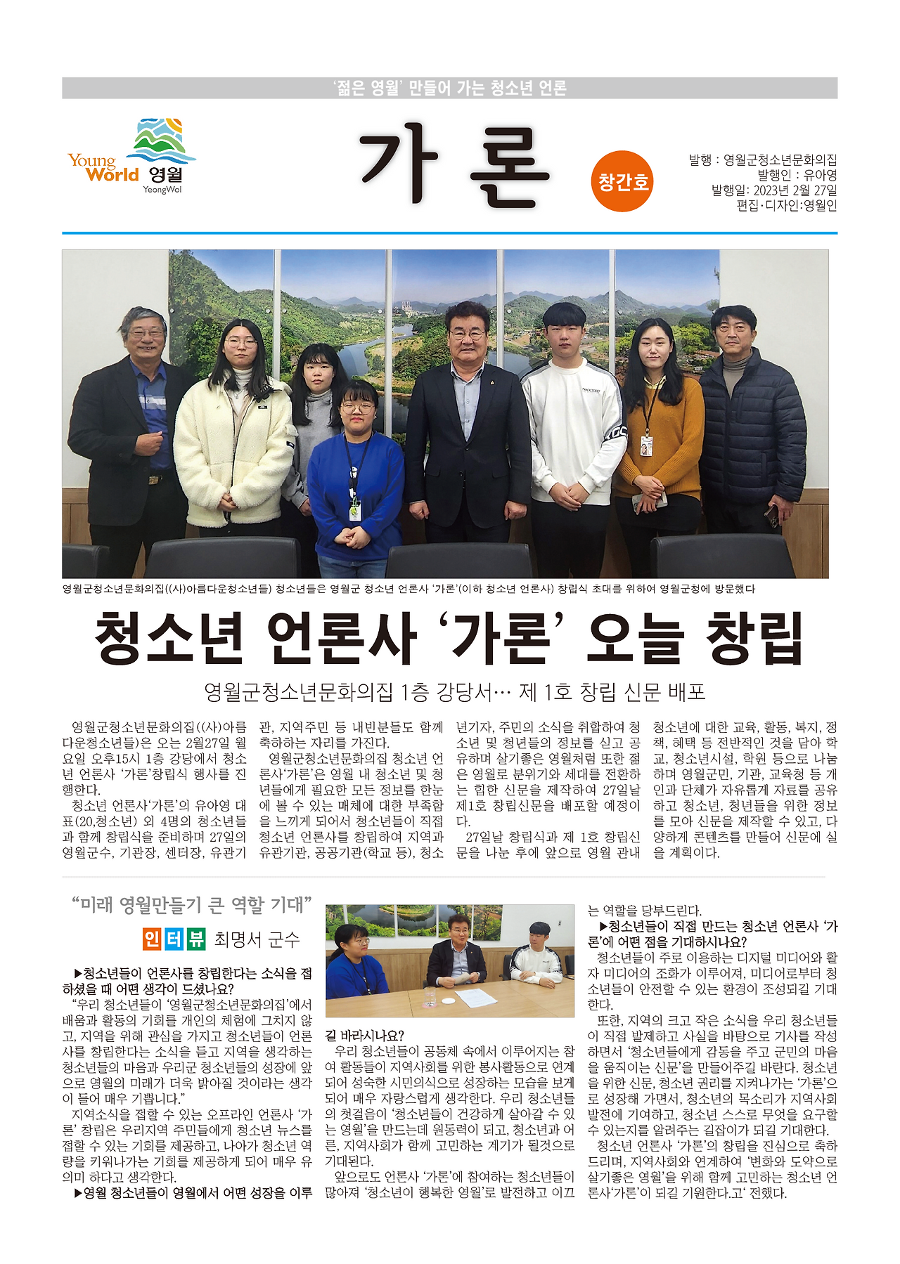 청소년이 직접 만드는 지역 신문? 영월 1호? 매거진?