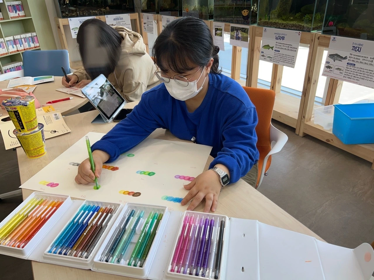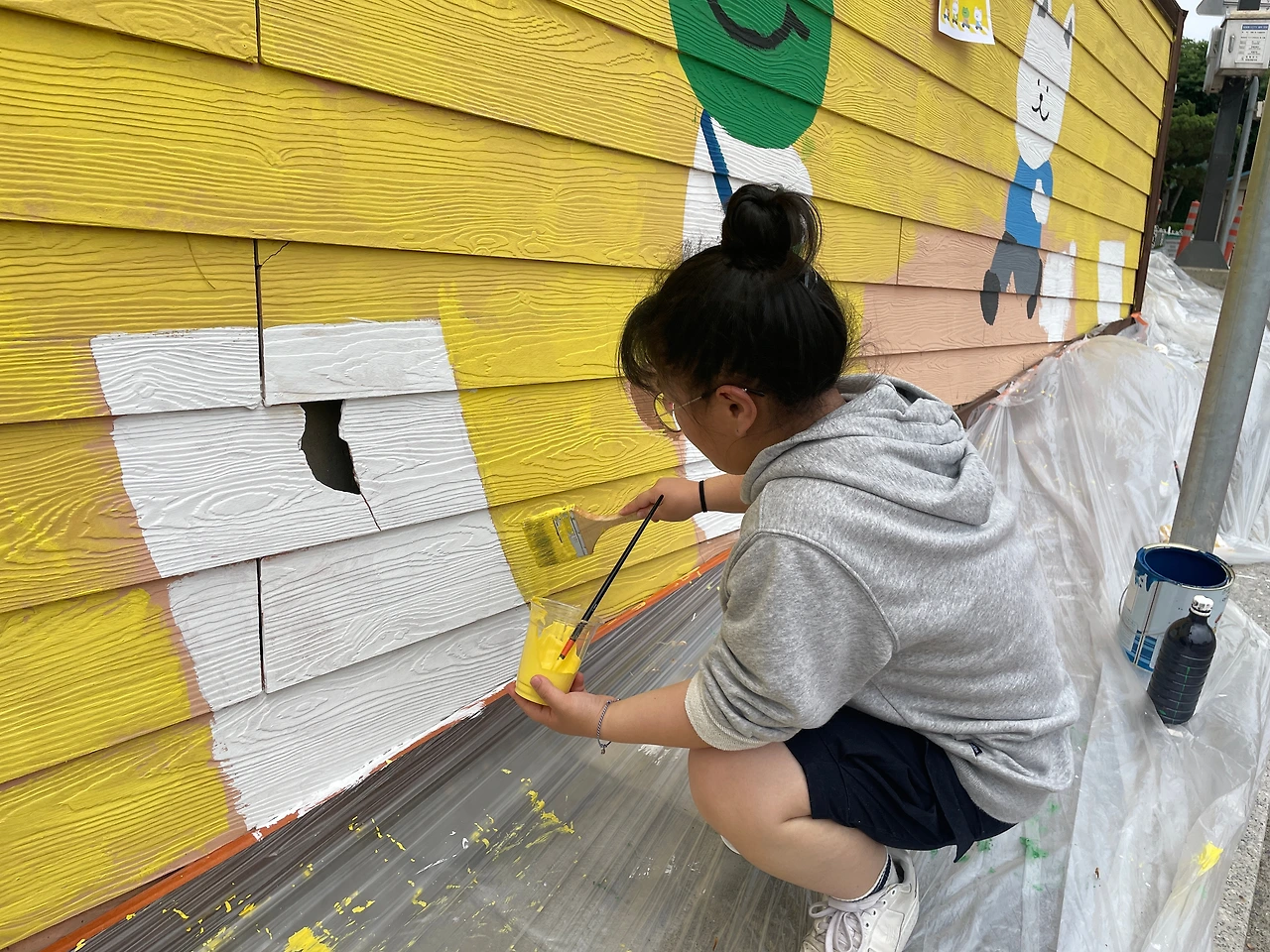 스케치는 그림을 잘 그리는 청소년과 청소년지도사, 애니메이션 용창우 작가님과 함께 완성했고, 우리는 그 위에 페인트로 하나씩 색을 채워 넣었다. 채색 과정은 생각보다 더 섬세하고 집중력이 필요한 작업이었다.