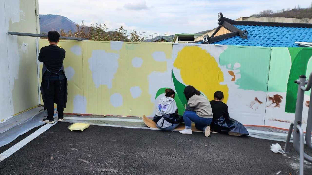 2023년 9월, 주천면 용석 2리 마을회관 주변에서 진행된 '작은 마을 벽화학교'프로젝트에 자원봉사로 참여했다. 예전부터 미술을 좋아해 벽화를 한 번 그려보고 싶다는 마음이 있었는데, 마침 영월군청소년문화의집에서 마련한 프로그램을 통해 기회가 생겼다. 청소년들이 직접 구상을 하고, 초등학생부터 청소년까지 함께 모여 작업을 진행했다.