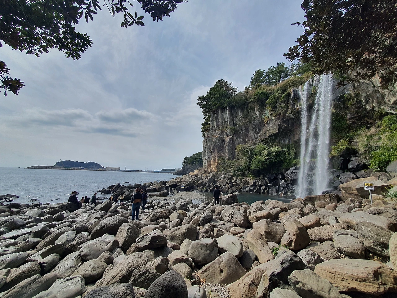 정방폭포에서 폭포와 사람들을 바라보며