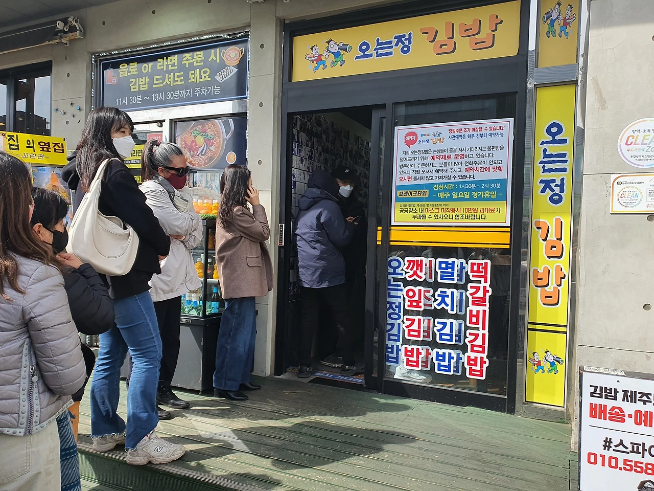'얼마나 맛있나 한 번 두고 보자!'라는 심정으로 꿋꿋이 기다리고 또 기다린다. 예약 줄만 있으면 금방 사람들이 예약하고 줄이 줄어들 건데 줄어들 기색이 전혀 없다. 알고 봤더니 김밥을 찾아오는 사람들이 가게 안을 점령했다. 그 조그만 가게 안에 예약 줄과 김밥 찾아가는 줄로 북새통을 이룬다.