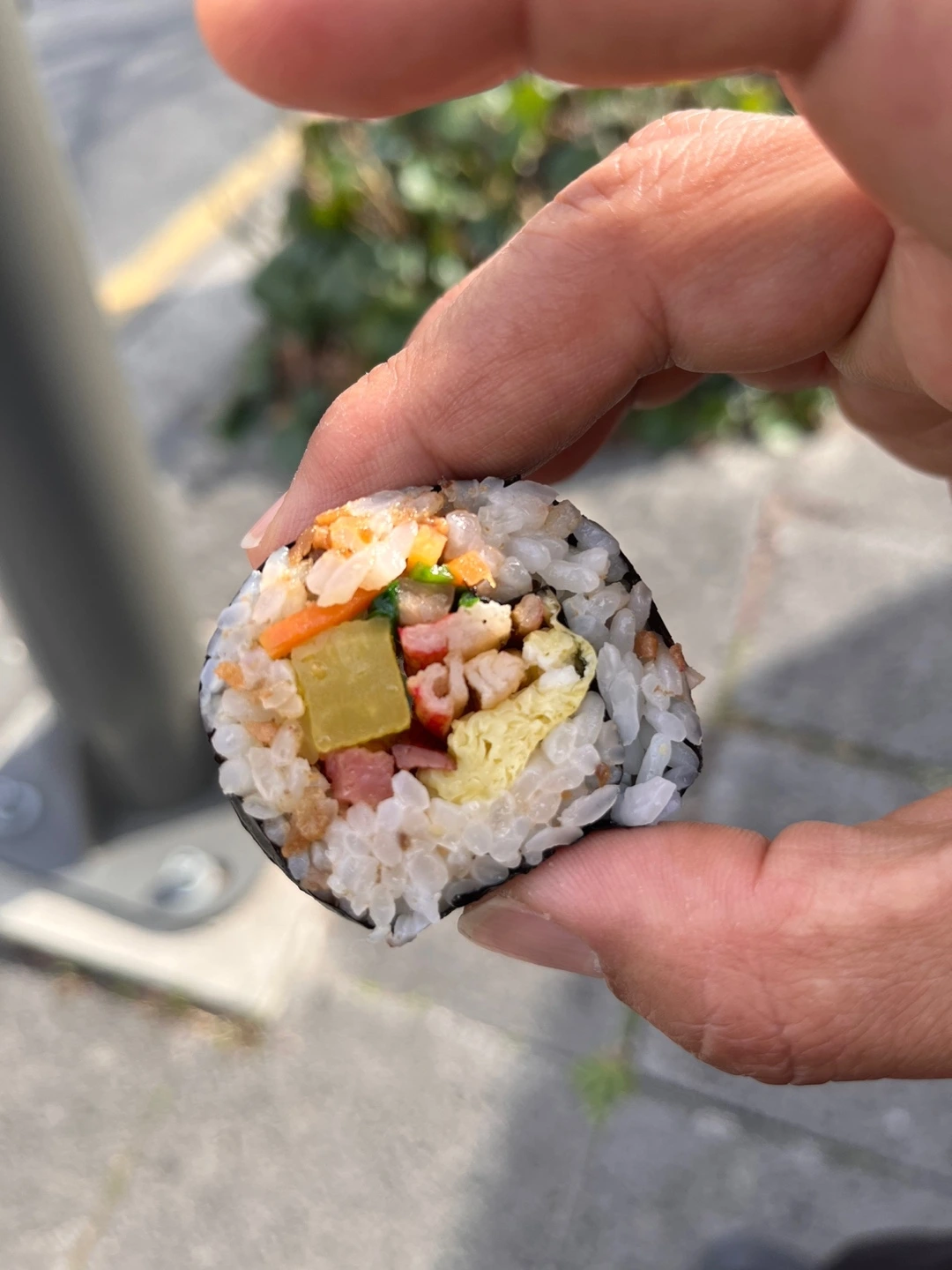 한 번은 더 먹고 싶은 맛인데 예약을 하려니 너무 귀찮다. 먹으면서 드는 생각인데 바로 말아서 더 따뜻할 때 먹으면 더 맛있겠다. 아무튼 드디어 오는 정 김밥 너를 만나고 너를 입 속에 품었다.