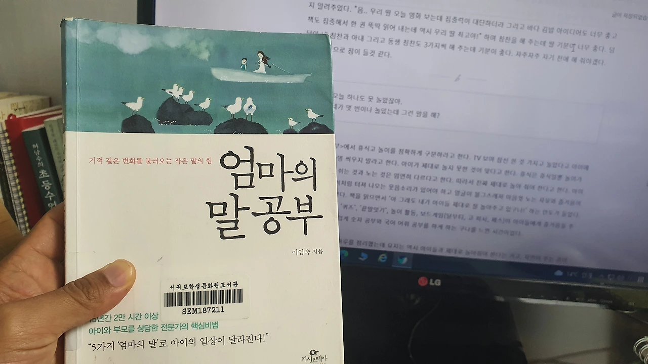 <엄마의 말공부>에서 엄마가 아이에게 감사한 일을 찾아주고, 아이가 잘 한 점을 찾아주고, 사랑스러운 이유를 자주 말해 주라고 한다. 딸 재우는데 갑자기 그게 생각이 난다. 그래서 오늘 하루 우리 딸이 잘 한 점을 3가지 알려주었다. "음.. 우리 딸 오늘 영화 보는데 집중력이 대단하더라 그리고 바다 김밥 아이디어도 너무 좋고 책도 집중해서 한 권 뚝딱 읽어 내는데 역시 우리 딸 최고야!" 하며 칭찬을 해 주는데 딸 기분이 너무 좋다. 덩달아 내 칭찬과 아내 그리고 동생 칭찬도 3가지씩 해 주는데 기분이 좋다. 자주자주 자기 전에 해 줘야겠다. 좋은 기분으로 잠이 들 것 같다.