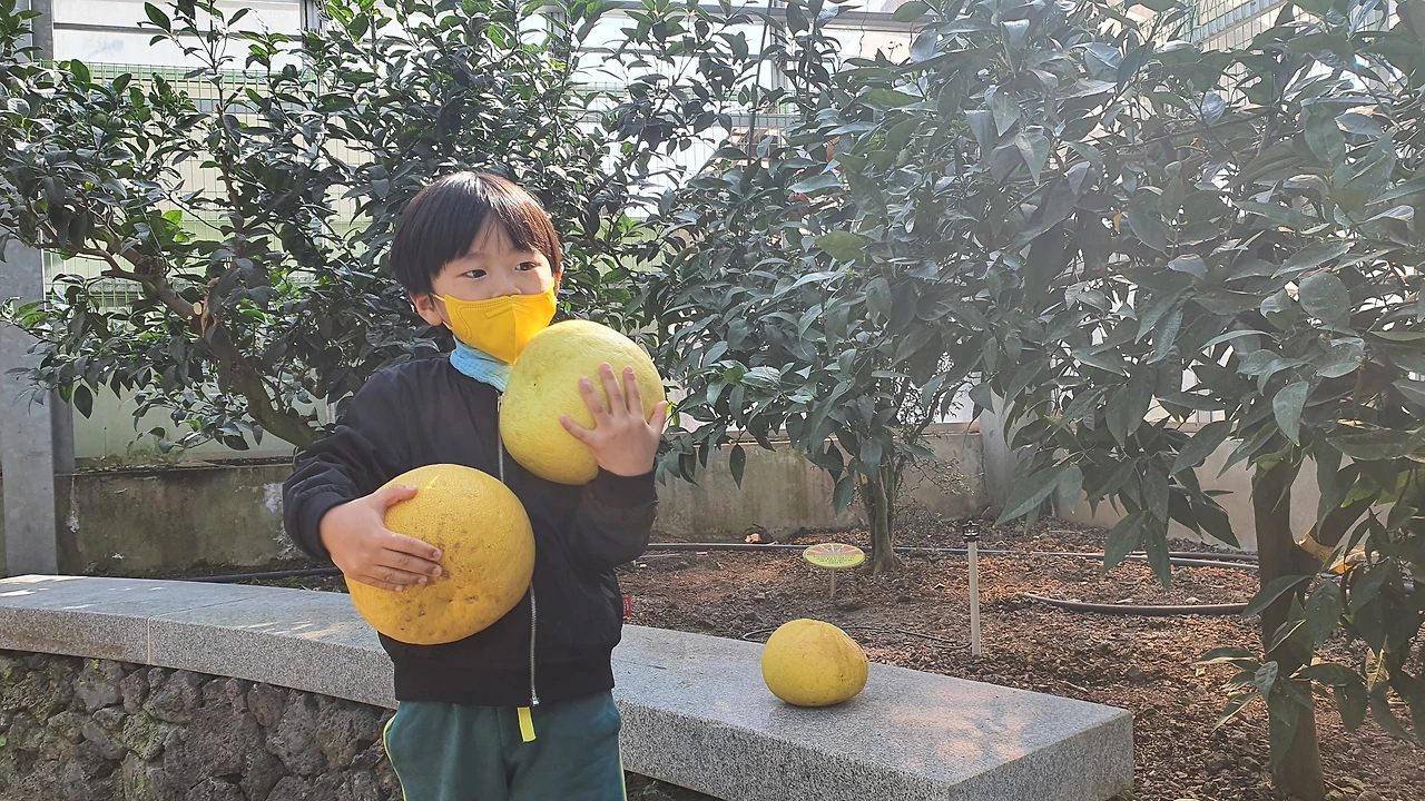 새로운 곳을 가 보는 것은 어른들에게나 아이들에게나 다 신나는 일인 모양이다. 태어나서 처음 보는 자기 머리만 한 귤을 보고 입을 쩍 벌리는 가 하면, 노란색 주황색 녹색 등 갖가지 색과 모양의 귤을 보고 놀라서 이리 달려가고 저리 달려가는 아이들이다. 모양과 색깔이 제 각각인 귤을 보면서 아 세상엔 이 귤처럼 사람들도 다 제각각 재미있게 개성 있게 살아가고 있구나라는 생각도 들었다.