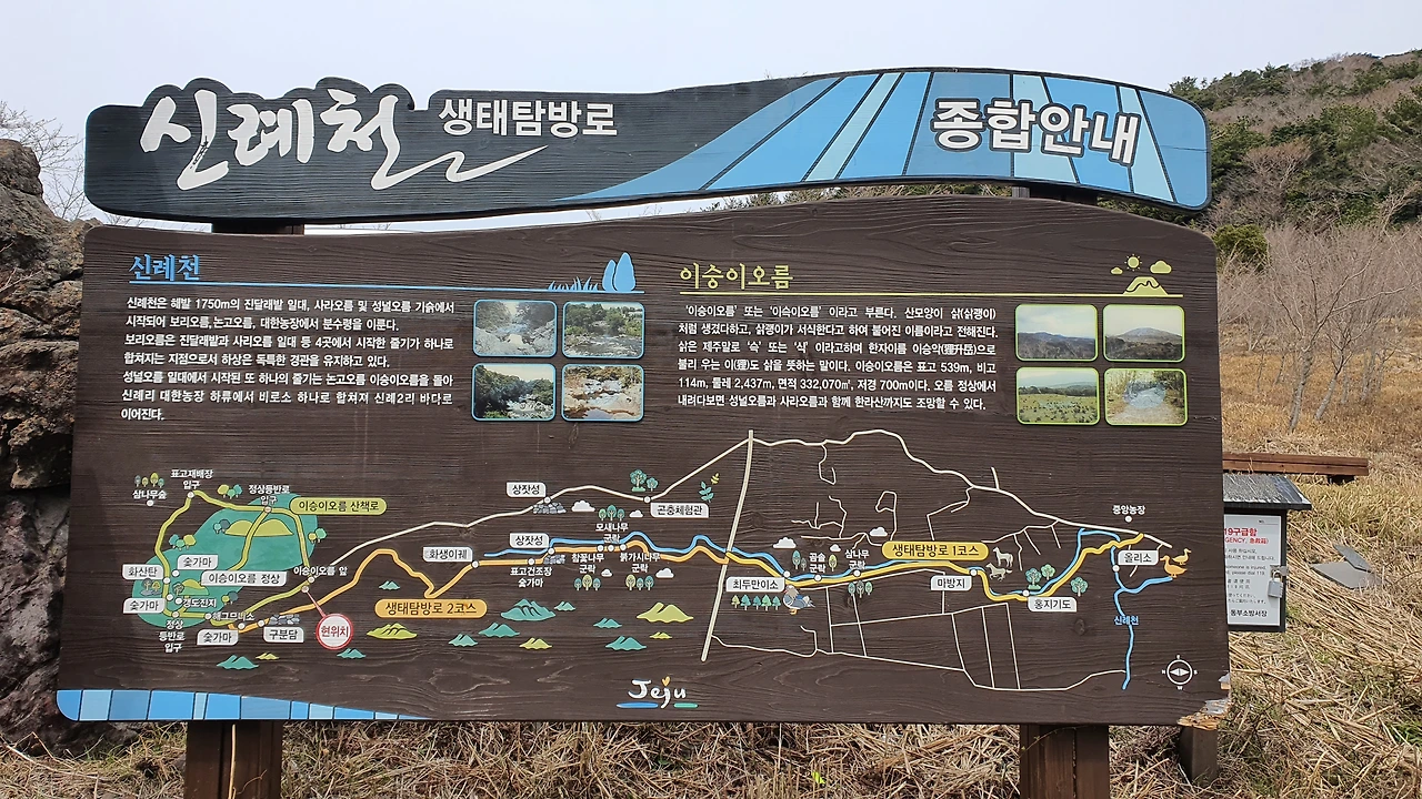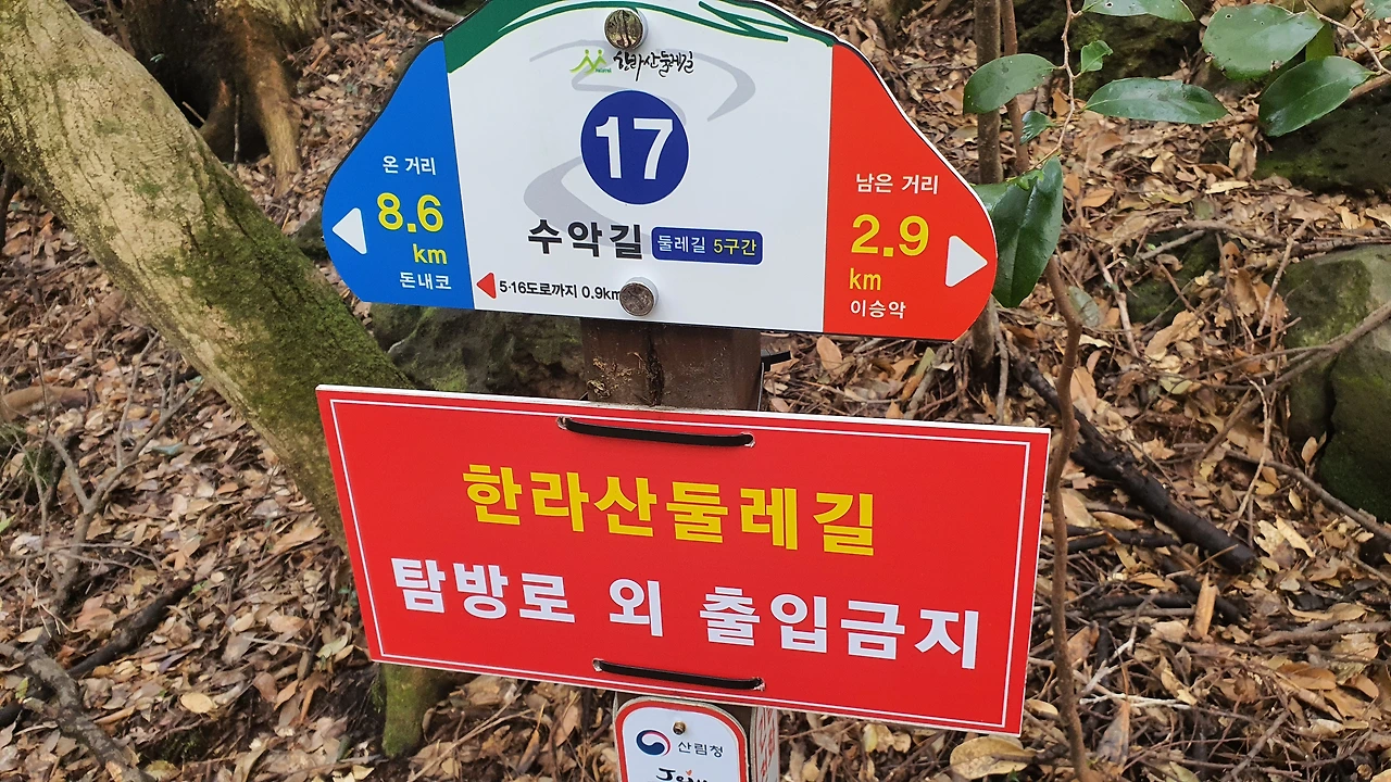281번 버스에서 내렸다. 오전 10시 55분. 여긴 한라산 둘레길 5구간 수악길이다. 한라산 둘레길이 여기 한 군데인 줄 알았는데 아니다. 지도 검색을 해보니 다양한 구간들이 많다. 다른 곳도 갈 생각을 하니 벌써부터 마음이 두근두근 거린다.