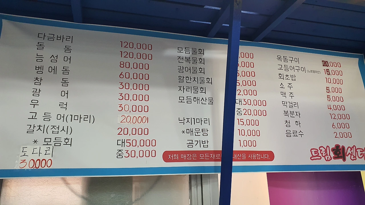 그게 뭐라고 한 번씩 찐하게 생각나는 맛. 그거 찾다가 용궁 갈 뻔했는데도 생각이 나는 거 보면 참 희한하다. 가려고 했던 집이 문을 닫아 1바퀴 뺑뺑 돌다 어항 속에 싱싱하게 물속을 가르는 고등어를 보고 그냥 들어간 횟집. 한 마리당 시가로 20,000원이다. 마음먹고 온 거라 2마리에 매운탕을 시켰다.