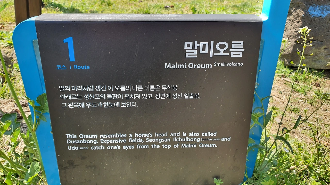 화장실 볼일 보고 나온 아내가 시원하게 말한다. 100프로 공감이 간다. 이제야 주위 풍경이 제대로 들어온다. 시작점을 알리는 곳에서 사진도 찍고 마음의 여유를 가진다. 아내도 여기 안내센터를 보더니 여기 온 기억이 난다고 그런다. '말미오름'부터 오르는 코스다. 추억은 좋았던 기억만 남는 모양이라더니 그 말이 딱 맞다. 시작부터 장난이 아닌 오르막, 이 오르막은 좋았던 추억 속에 아예 없었다. 오르막에 오르니 저 멀리 우도와 성산일출봉과 맑디맑은 바다가 쫙 펼쳐진다. 소똥 냄새와 함께 8년 전 추억이 스멀스멀 올라온다.