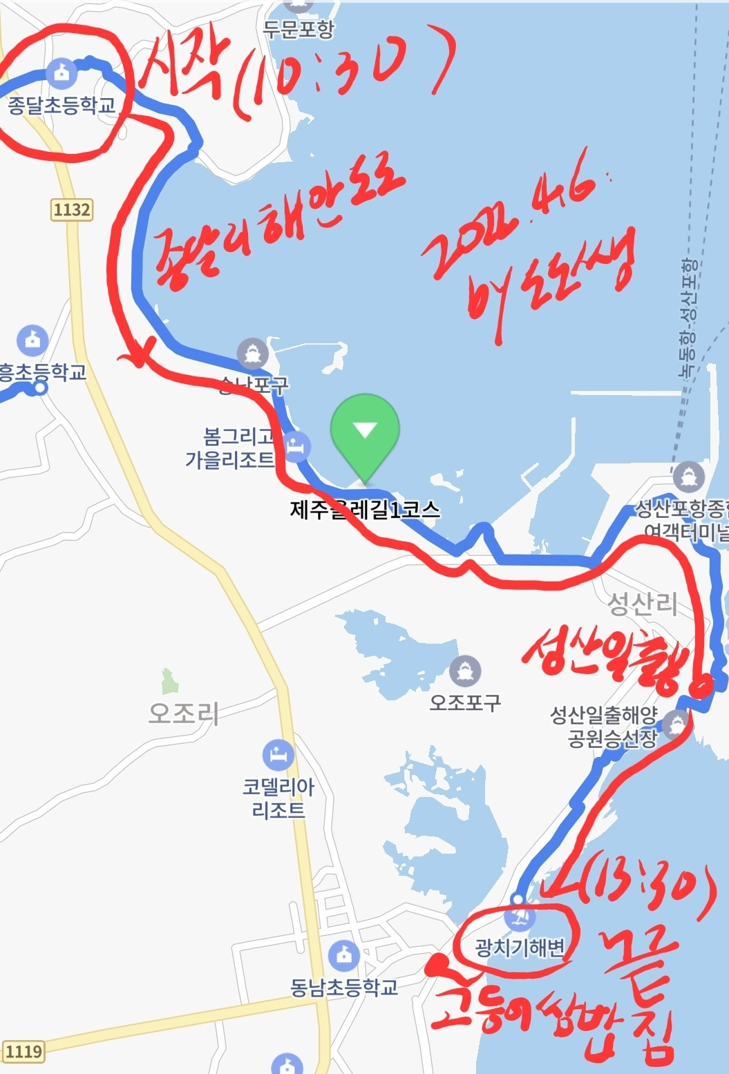 "1코스는 근데 뭔가 아쉽다. 저번 3코스, 5코스 걸을 땐 너무 좋았는데. 똑같은 바단데 왜 그렇지?"