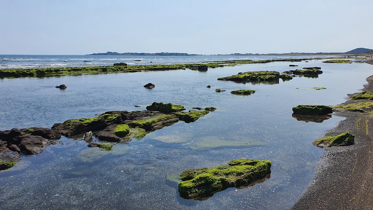 종달리 해안도로에 들어섰다. 쫙 펼쳐진 시원한 바다가 내 맘을 설레게 한다. 물속 세상이 너무 궁금한 나 내려가서 물속에 뭐가 있나 살펴보는데 스무 마리 정도 되는 숭어 떼들이 나를 보고 깜작 놀라 쌩하니 도망간다.