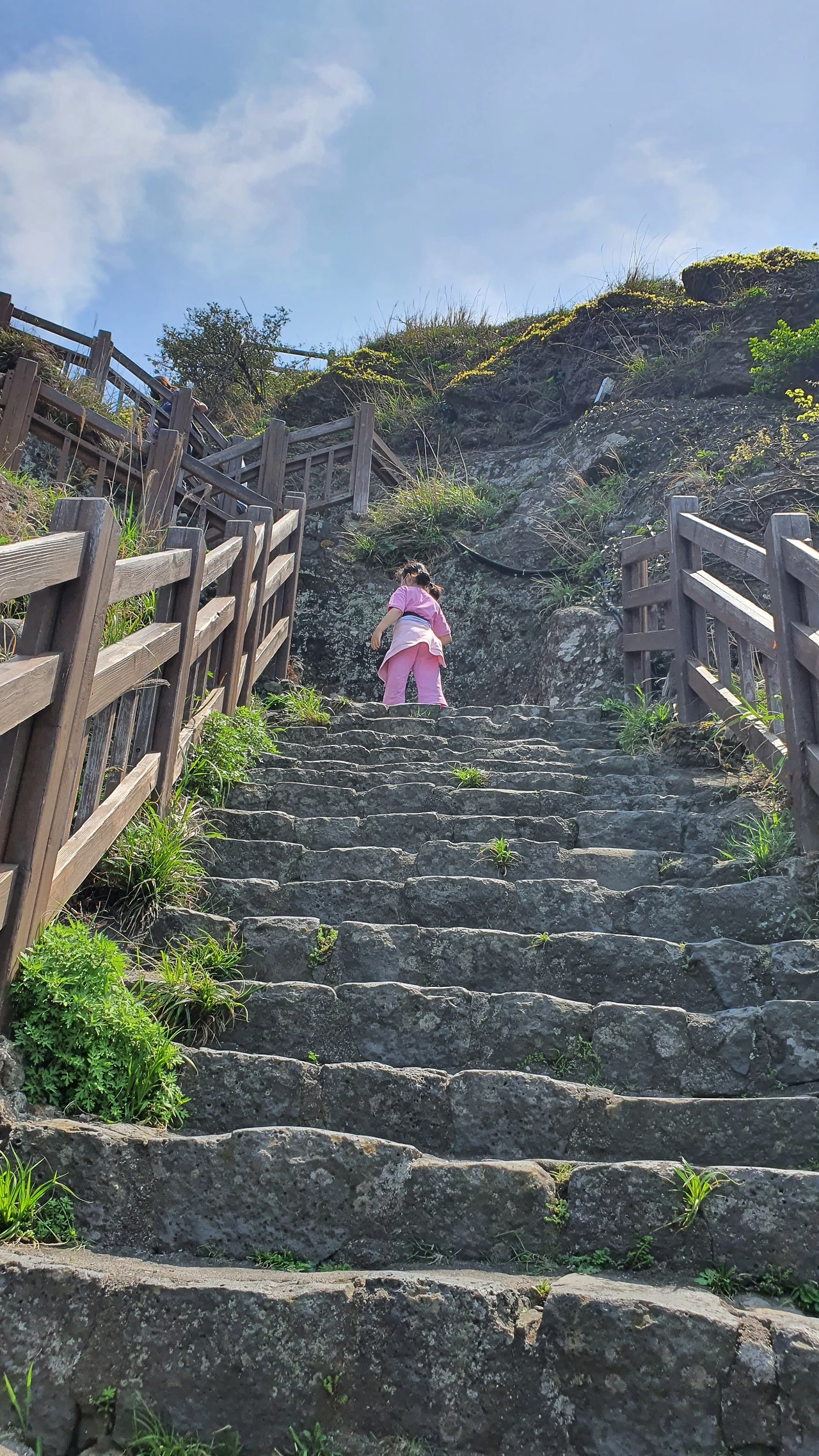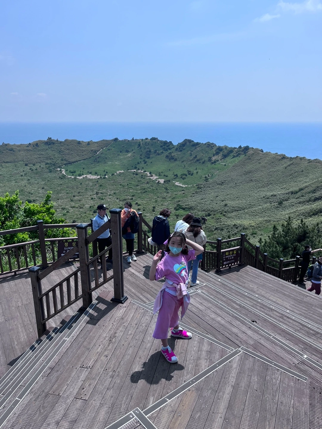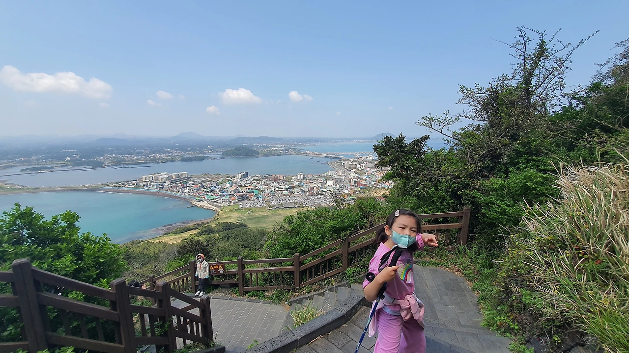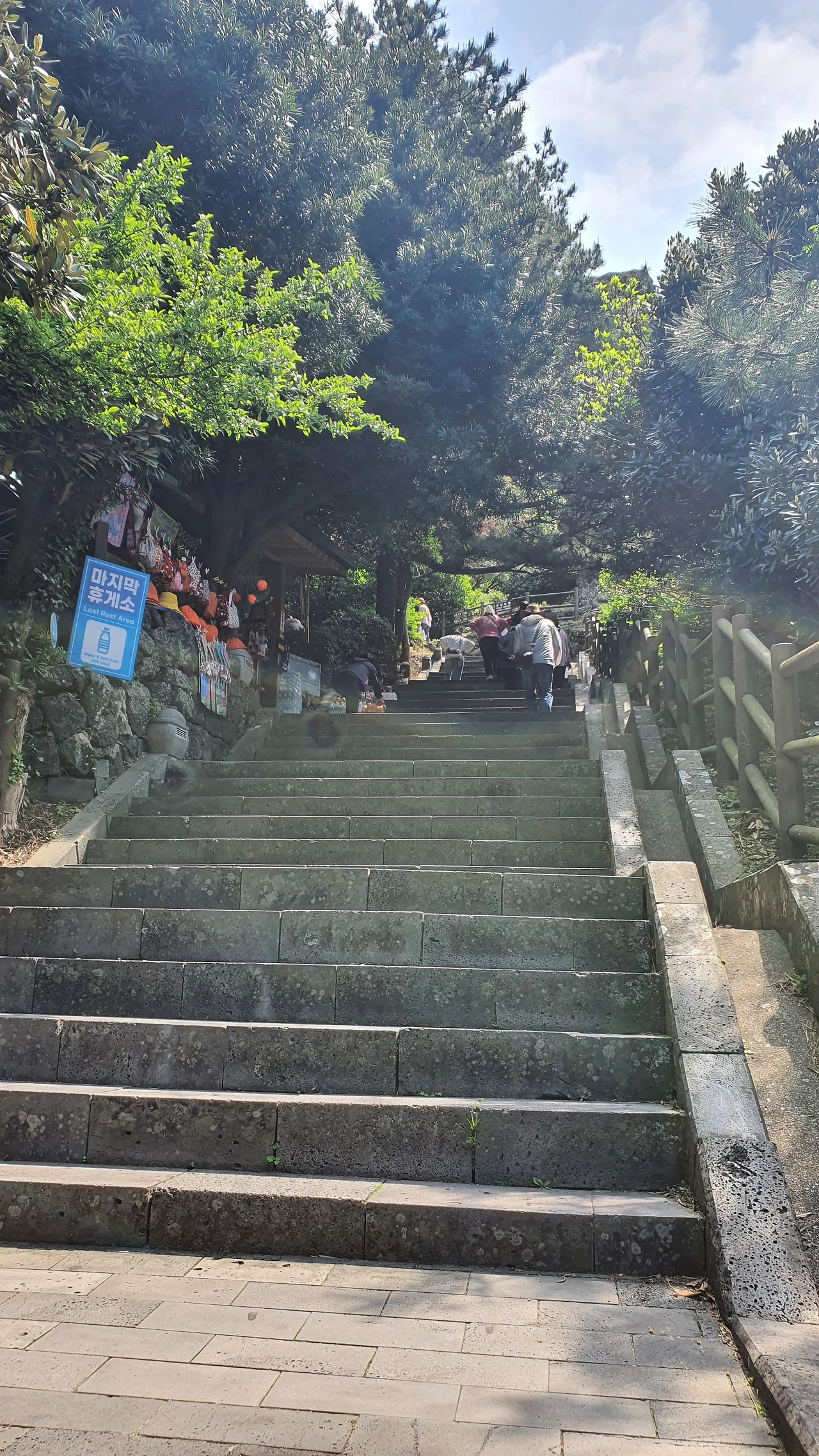 "아빠, 다리 아파, 난 내려가는 길로 갈래." 하며 하산하는 길로 빠지는 딸이다. 글자 잘 읽을 줄 아는 건 이럴 땐 하나도 도움이 안 된다. 하하하하하. 여기 성산일출봉 총각 때보다 훨씬 더 경사가 높아진 거 확실하다. 오르고 올라도 숨이 목까지 찬다.