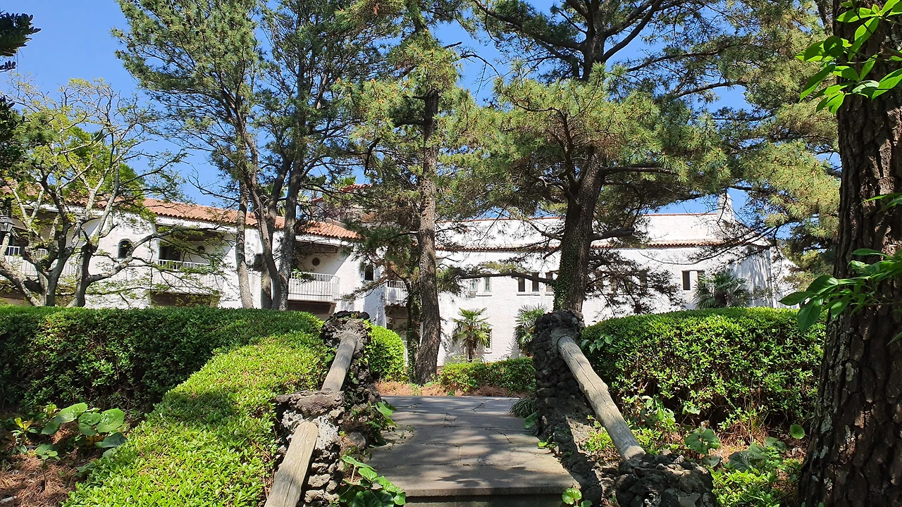 그렇게 쉬었더니 다시 힘이 난다. 바위를 건너 물길을 건너니 칼호텔로 이어지는 좁다란 길이 나온다. 등산 차림에 칼호텔 야외 카페 길로 딱 나왔는데 여긴 뭐 완전 딴 세상이다. 다들 멋진 옷에 편안하게 의자에 앉아 커피를 마시고 담소를 나누고 있는데 혼자만 등산객이 된 느낌, 너무 뻘쭘해서 어디 숨고 싶을 정도였다. 다음에 아내랑 꼭 여기 와서 또 다른 세상에 나도 잠시 동참할 거다. 하하하하.