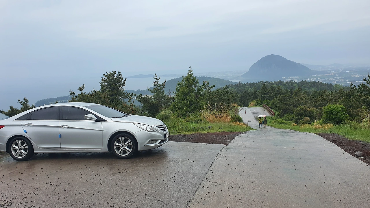 이렇게 비 내리는 날, 차를 들고 온 건 정말 신의 한 수다. 비 오고 기온까지 많이 떨어진 오늘 만일 무리해서 걸었더라면 어땠을까? 아마 몸 상태가 안 좋은 아내 더 안 좋아져 며칠 고생했을지 모른다. 정상 근처까지 올라온 내 차가 오늘따라 더 멋지고 더 당당하게 보인다. 게다가 이렇게 비까지 피할 수 있으니 더 고맙다! 차에 좀 있었더니 비가 잦아들었다. 거의 그쳐 간다.