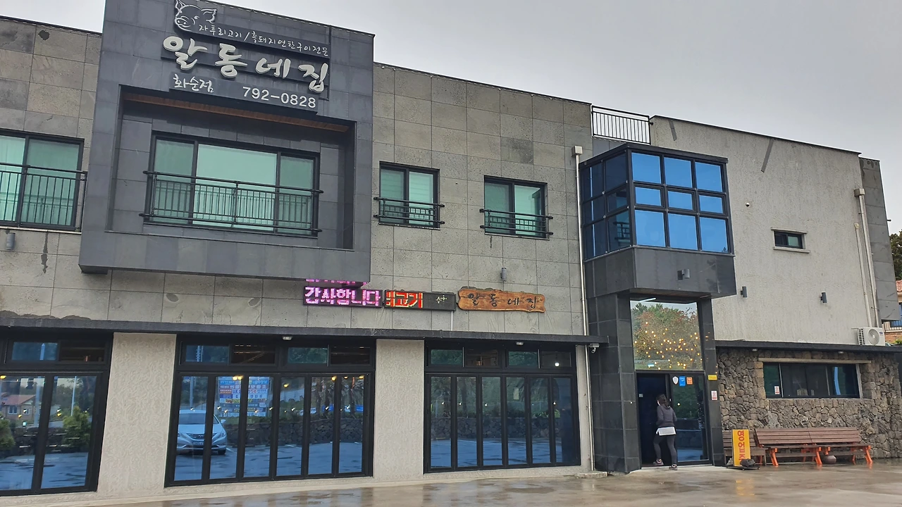 그런데 경치에 취해 추운 줄도 모르고 비와 바람을 맞으며 정상에 오래 있었더니 아내 몸이 춥다. 얼른 따뜻한 점심을 먹고 추운 몸을 녹여야겠다. 미리 알아본 '알동네집 (화순점)'에 제일 첫 손님으로 도착했다.