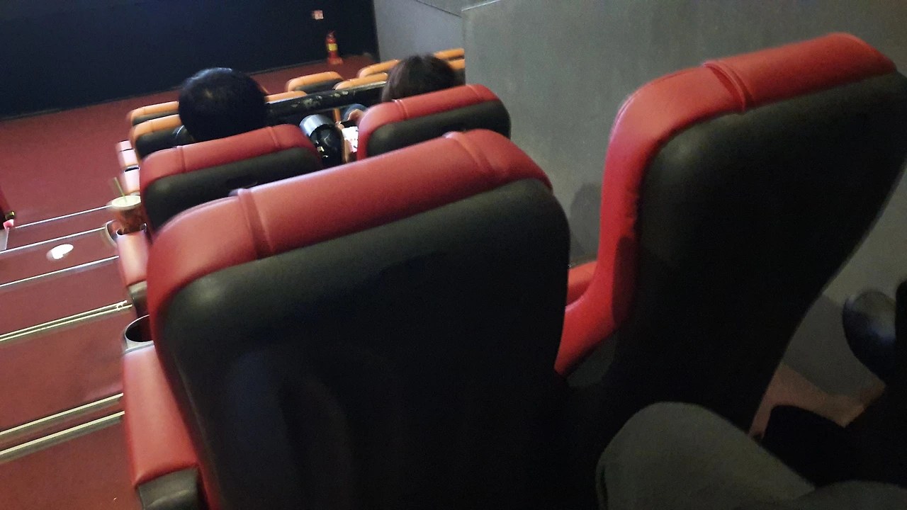 금세 영화할 시간이 다 되어 얼른 정리하고 영화관으로 다시 돌아왔다. 오늘 볼 영화는 '공기 살인'이다. 가습기 살균제 실화를 바탕으로 어떻게 영화를 만들었을지 기대가 된다. 6관 영화관 안으로 들어왔는데 완전 아담 사이즈다. 아내가 고른 두 칸짜리 맨 뒤 자석이 너무 마음에 든다.