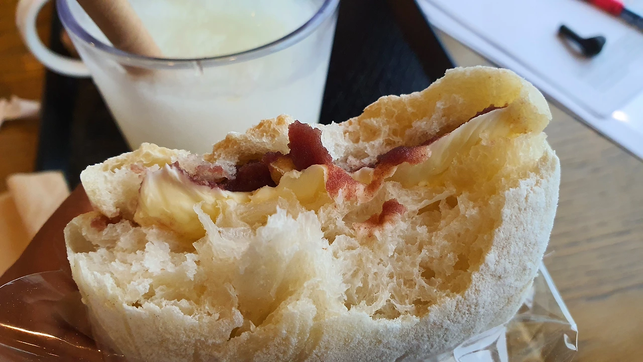 빵 살 생각이 하나도 없었는데 아내 벌써 '버터 스콘' 하나 달라며 주문을 마쳤다. 나도 뭘 고르지, 하며 찾아보는데 아내가 하나 추천해준다. 처음 보는 빵인데 이름이 '고메 버터 치아바타'라고 한다. 뭣이 빵 이름이 이렇게 길고 어렵냐? 난 그냥 크림단팥빵이 세상에서 제일 맛있다. 하하하하하. 맛있을 거란 기대로 룰루랄라 거리며 별다방 2층에 올라왔다.
