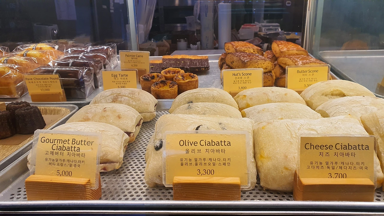 차를 주차하는데 주차장이 한산해 참 좋다. 비 오는 날 별다방에서 커피 먹을 생각에 우리 아내 마냥 기분이 좋다. 좀 걸어가다 횡단보도를 건너 왼쪽 코너를 돌려는 찰나, 아내와 나 동시에 "빵 냄새 진짜 좋다!"며 빵 냄새나는 쪽으로 눈길을 획 돌렸다. 빵을 별로 좋아하지도 않는데 희한하게 빵 냄새가 여기 오라며 사정없이 손짓을 하고 있었다. 진짜 거짓말 하나도 안 보태고 솔솔 나는 구수한 빵 냄새를 따라갔더니 이미 아내와 나 가게 안에 들어가 있었다.