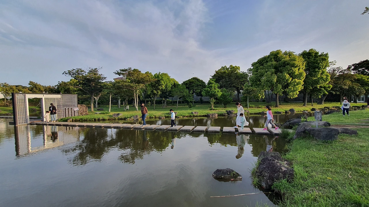 우리 아이들에게 칠십리 시 공원 놀이터는 이젠 심심할 땐 언제나 통하는 만병통치약과 같은 존재가 되었다. 처음에는 '칠십리 시공원'이라고 하길래 왜 하필 '시'가 붙었지 하며 여기 부산광역'시'도 아니고 제주특별자치도인데 왜 붙었지 하며 의아해했었다. 어느 날 안내판에 '시'옆에 한자 '詩'가 보여서 '아! 그래서 시 공원이구나!' 하고 아내와 나 무릎을 탁 쳤다. 여기 공원을 자주 산책하는데 여기 군데군데 좋은 시들이 바위에 많이 적혀 있기 때문이다.