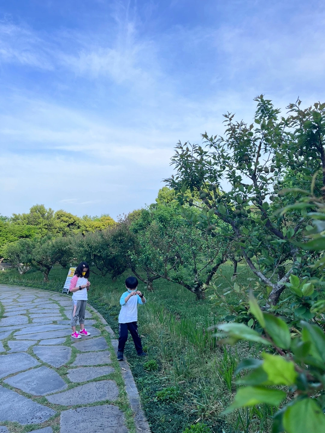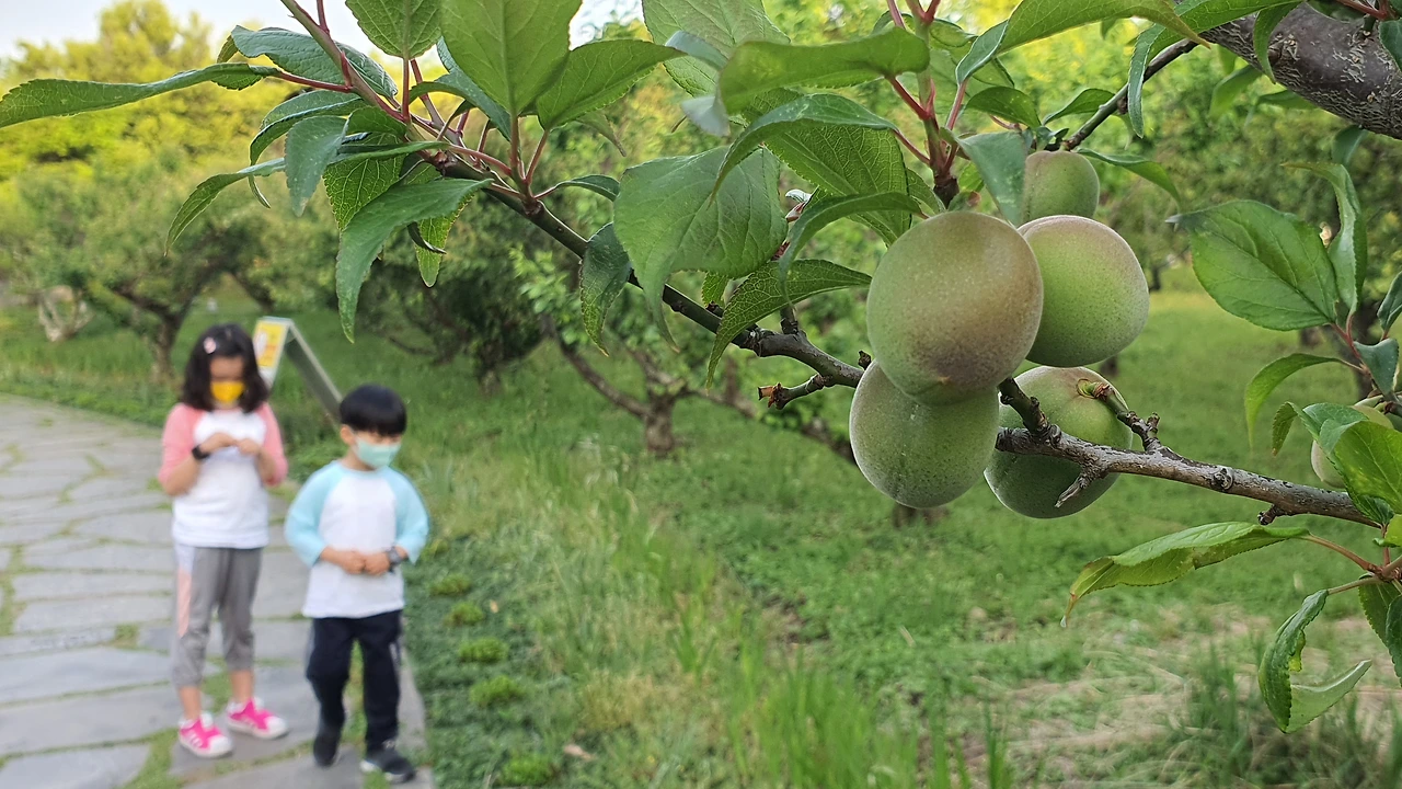 놀이기구도 신나게 타고, 운동기구도 신나게 했다. 그리고, 여기 공원도 참 오랜만에 산책을 했다. 매실나무 밭에서 매실도 주워 관찰도 하고, 저기 저 멀리 보이는 천지연폭포도 구경했다.