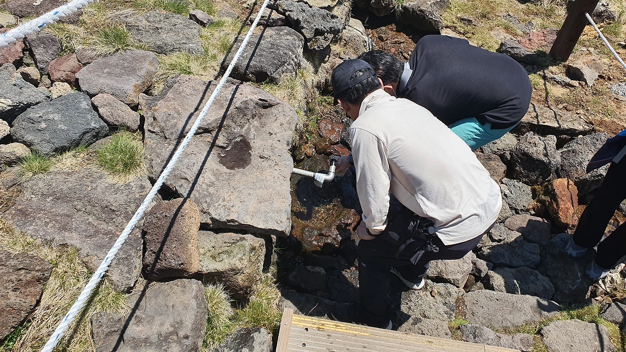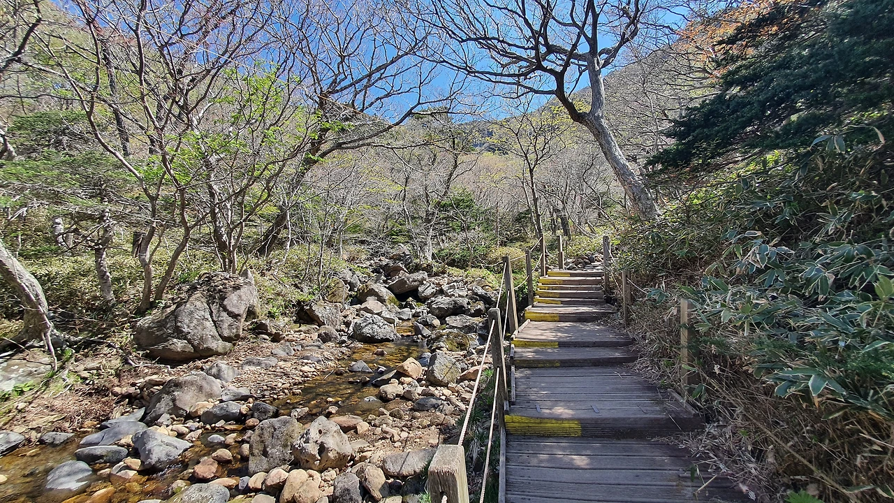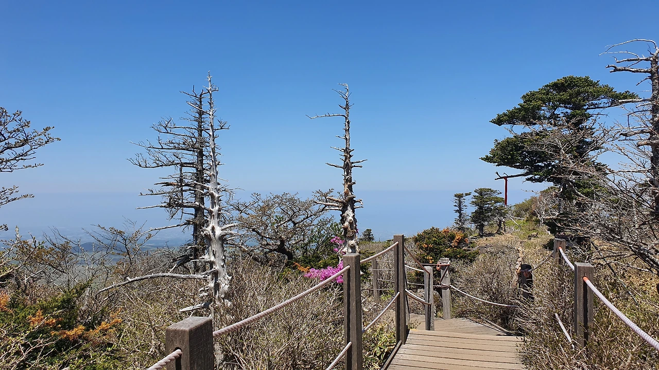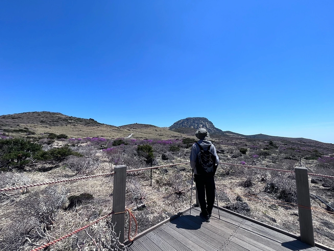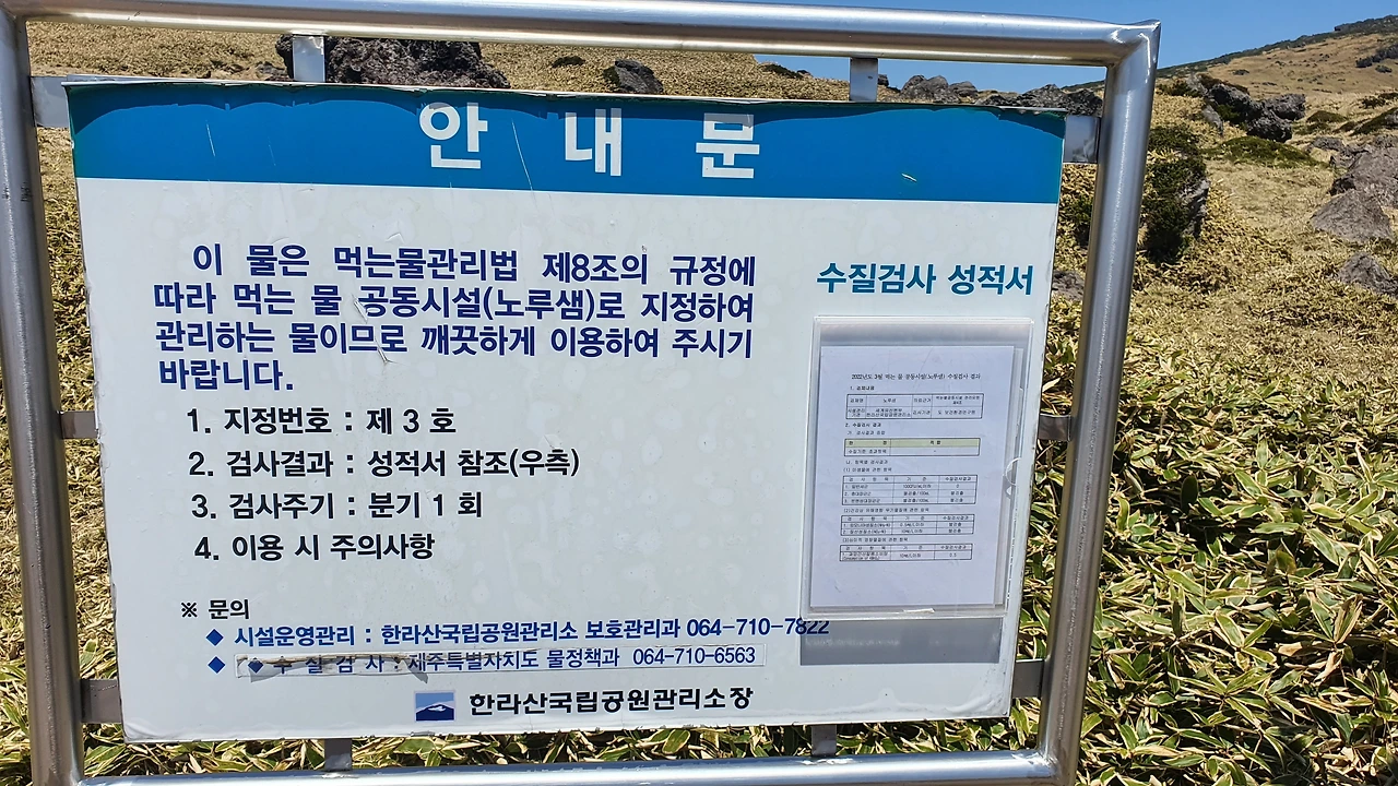 탐방로 입구(10:00)- 영실기암(10:45)-병풍바위(10:50)-휴식(11:00)-구상나무숲길(11:25)-백록담, 철쭉 전망(11:40)-전망대(12:00)-노루샘(12:10)-윗세오름대피소(12:20)-점심(12:30)-하산(13:50)