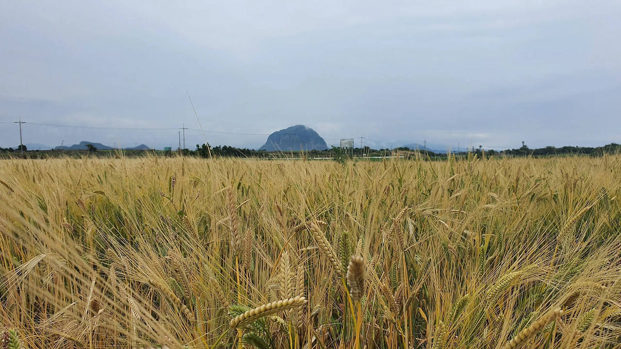 사계 마을 길 한가운데서 너를 보는데 보리와 마늘과도 제법 잘 어울리더구나! 뽑아 놓은 마늘 때문에 마늘향이 바람을 타고 내 코를 얼마나 기분 좋게 했는지 몰라. 집으로 가는 사계 중앙로에서도 202번 버스와 cu와 함께 너를 다시 만나는구나!