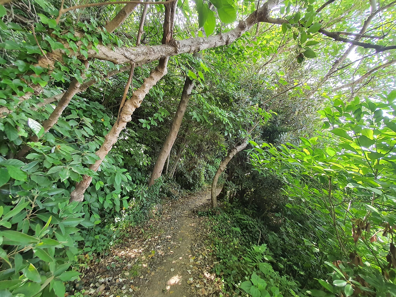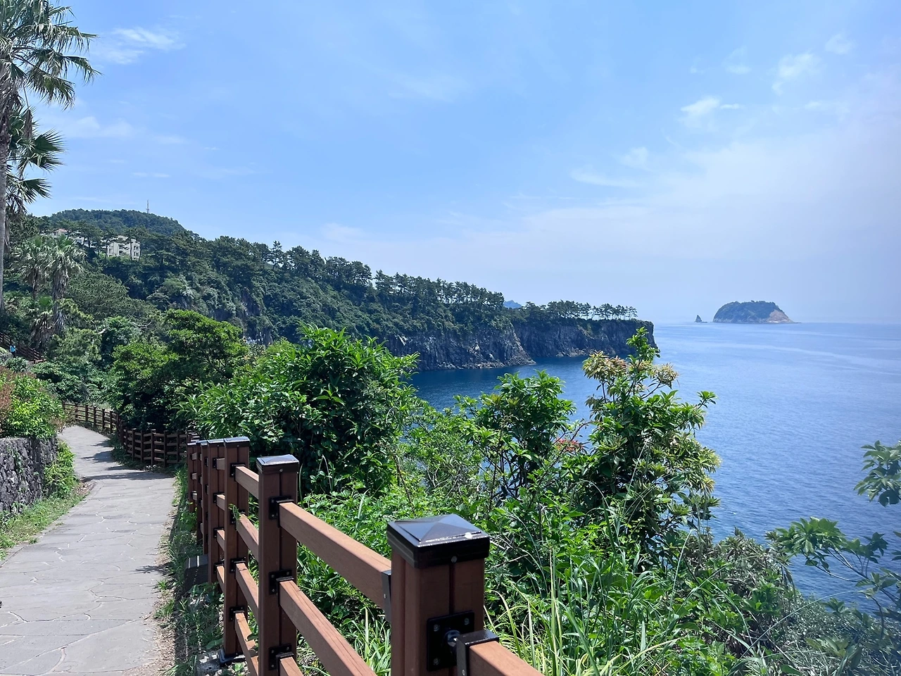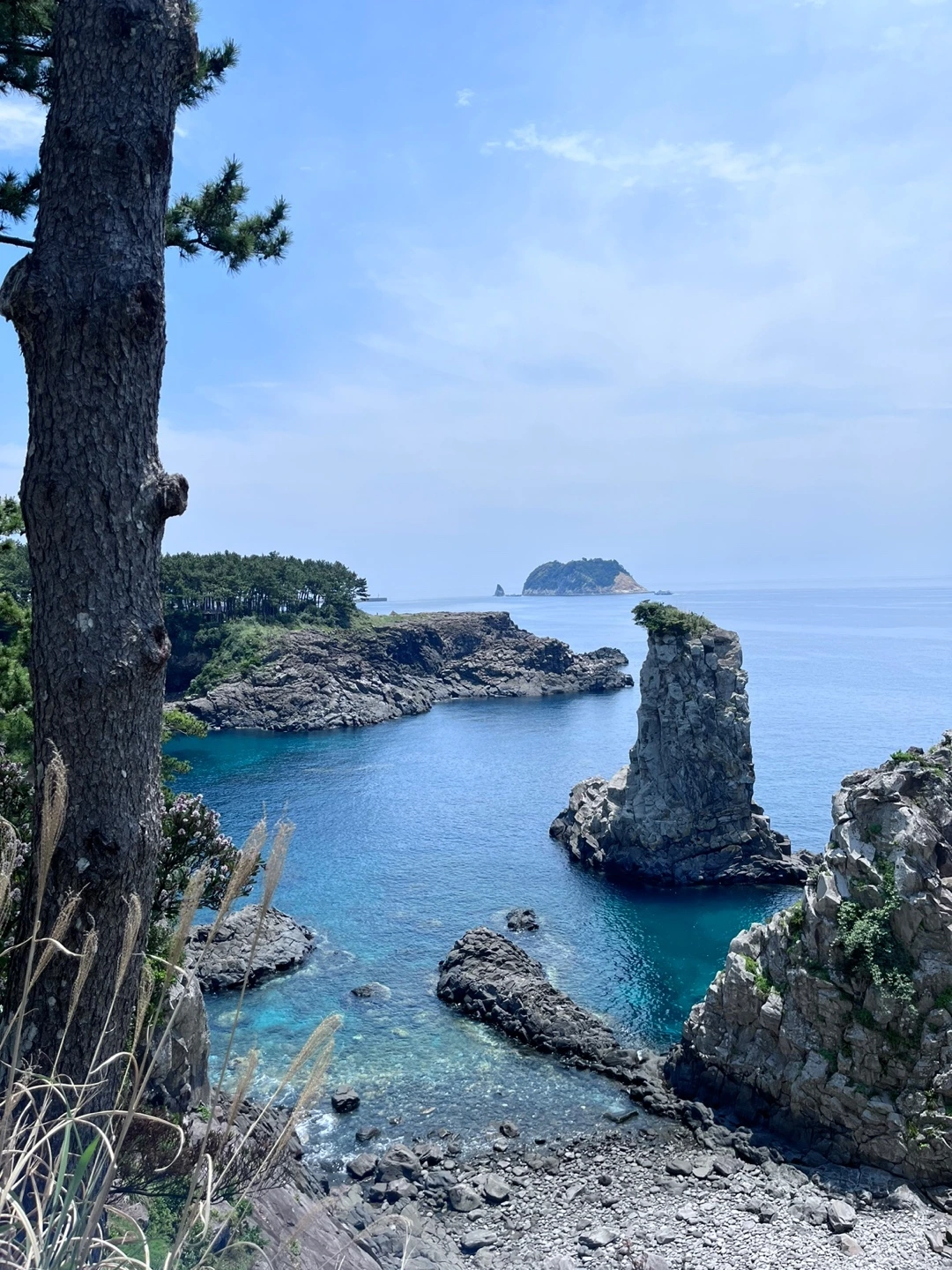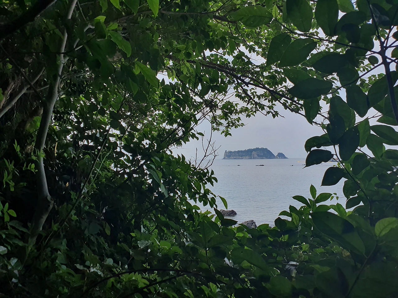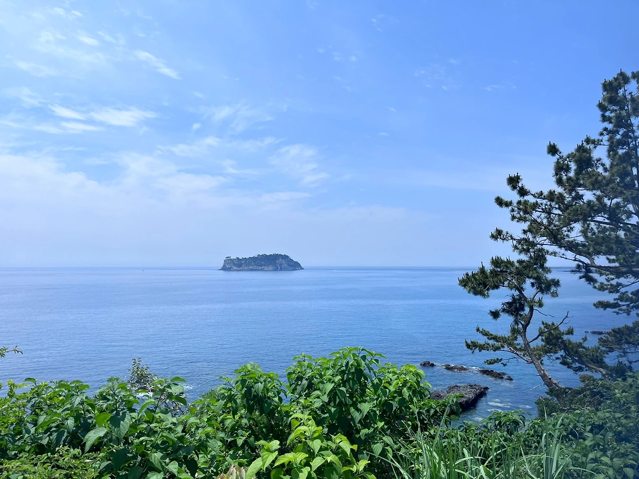 숲 속에서 바라본 범섬 풍경이 또 그렇게 멋있다. '찰칵' 너를 또 찍어본다. 우리 아내 지금껏 너무 좋은 풍경을 많이 봐서 오늘 길은 너무 평범하다며 한 번도 폰을 꺼내지 않았는데 드디어 폰을 꺼내 사진을 찍는다. 시원하게 뚫린 바닷길이 마음에 들었던 모양이다.