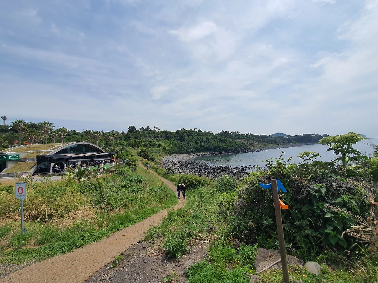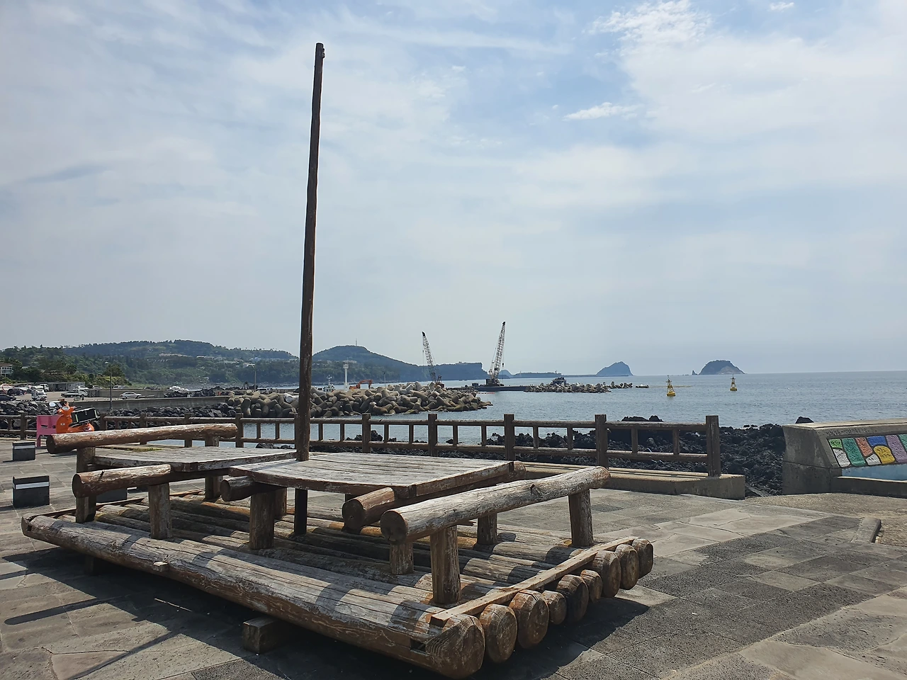 그런데 시작이 너무 좋았나? 코너를 돌자마자 법환포구 쪽 길이 나오는데 다소 실망스럽다. 바다는 크레인 두 대가 공사 중이고, 걷는 길엔 왜 그렇게 인공적인 설치물들이 많은지. 자연스럽게 뒀더라면 훨씬 더 좋았을 텐데라는 아쉬움이 들었다.